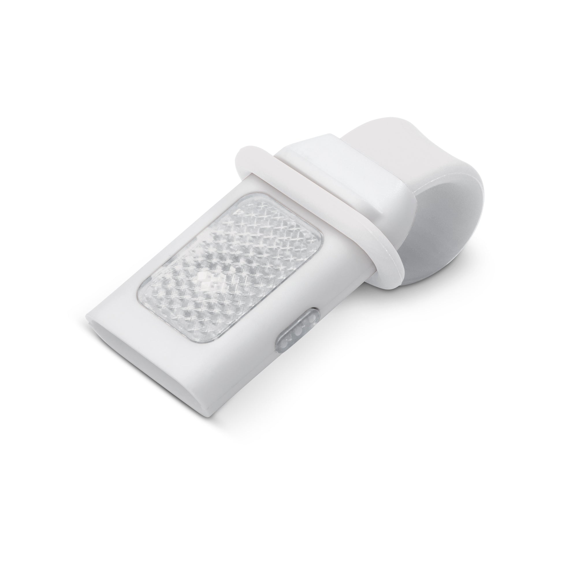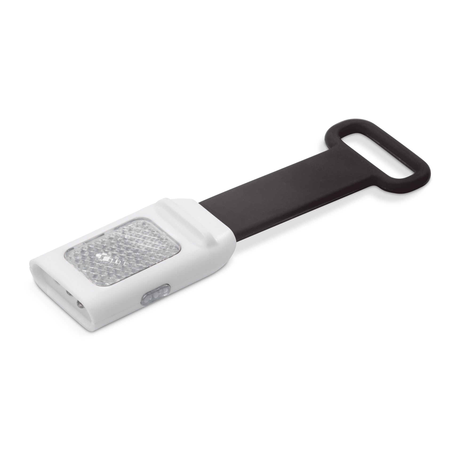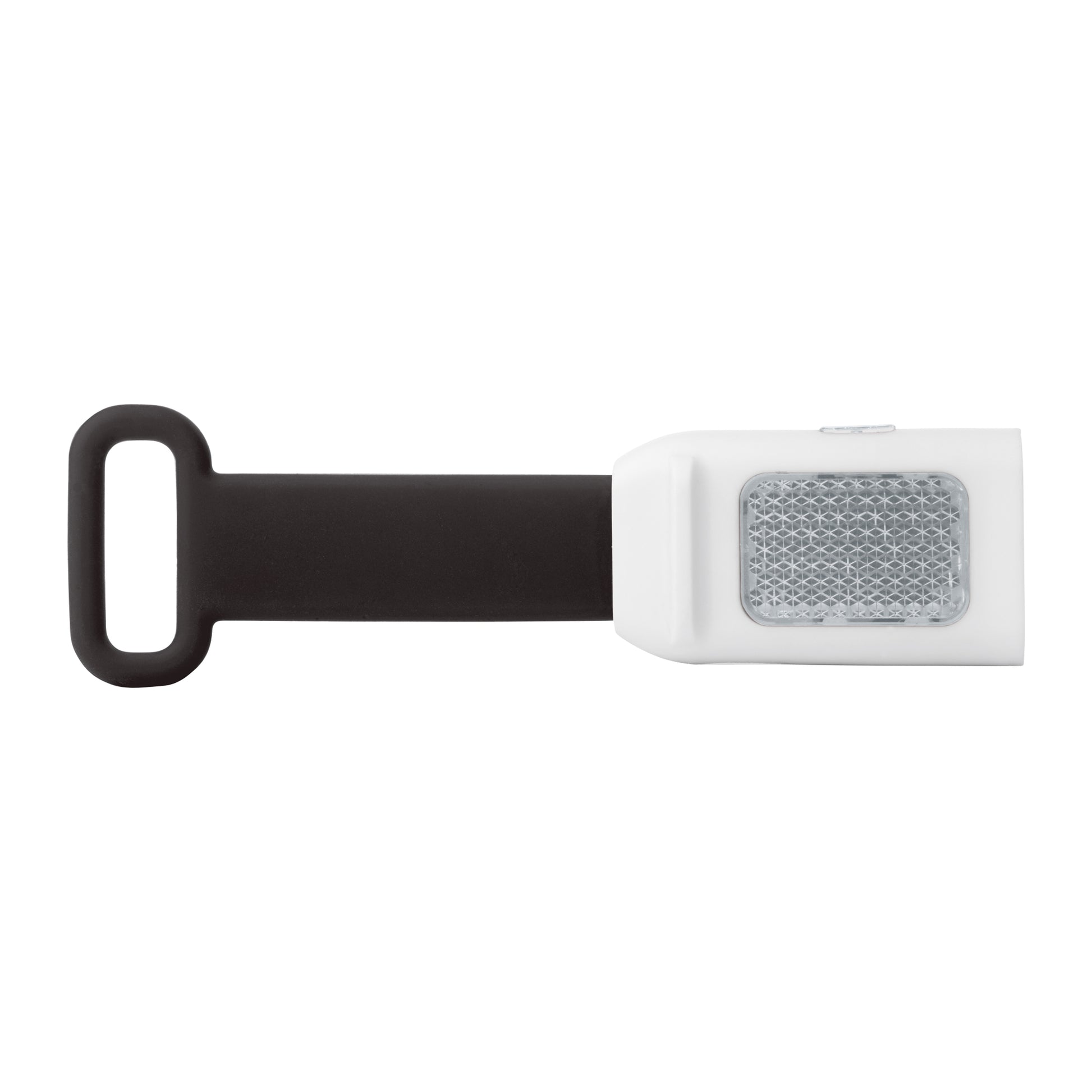 Diese Leuchte lässt sich einfach befestigen, zum Beispiel an einer Tasche oder an Kleidung. Die Batterien sind im Lieferumfang enthalten. Sie verfügt über drei verschiedene Modi: Blinklicht, Dauerlicht oben sowie Dauerlicht an der Vorderseite.