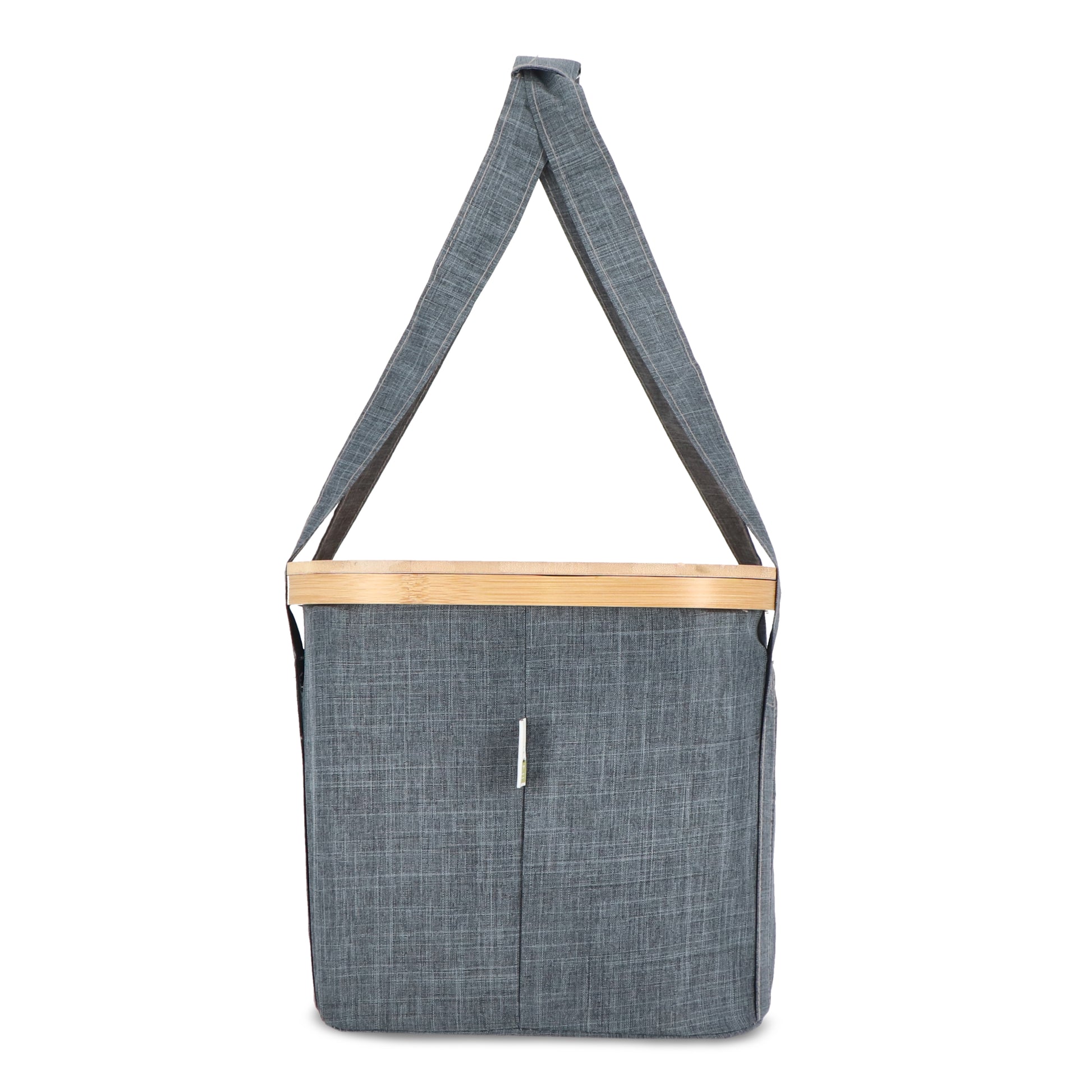 Im Inneren befindet sich eine herausnehmbare Kühltasche mit Tragegriff und isolierender Folie, die den Korb flexibel als Kühllösung für Speisen und Getränke nutzbar macht. Der Bambusdeckel dient zugleich als Schneidebrett, während Front- und Rückentaschen zusätzlichen Stauraum bieten.