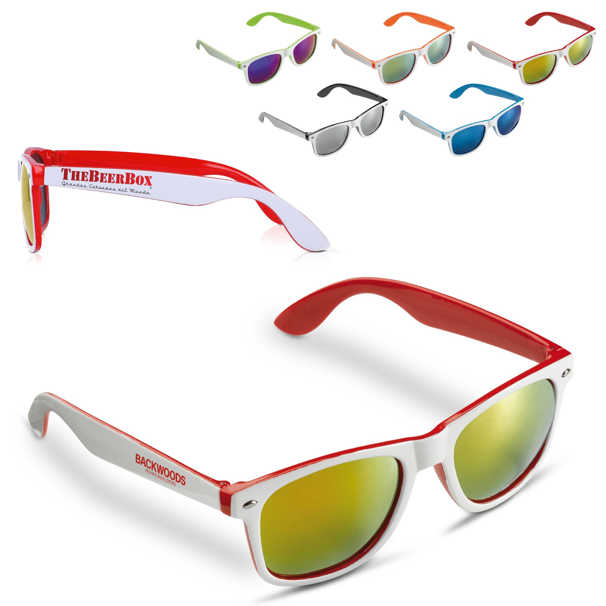 Moderne Sonnenbrille mit zweifarbigen Rahmen. Die getönten Gläser sind mit einem UV400-Filter ausgestattet.