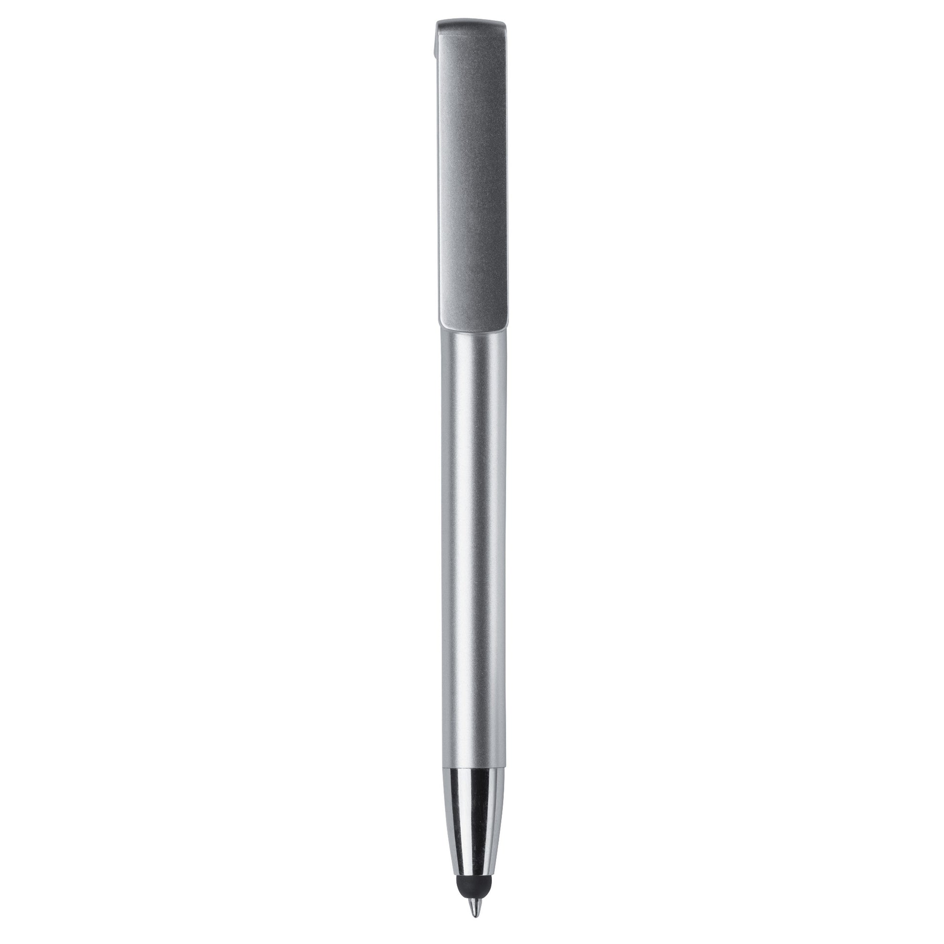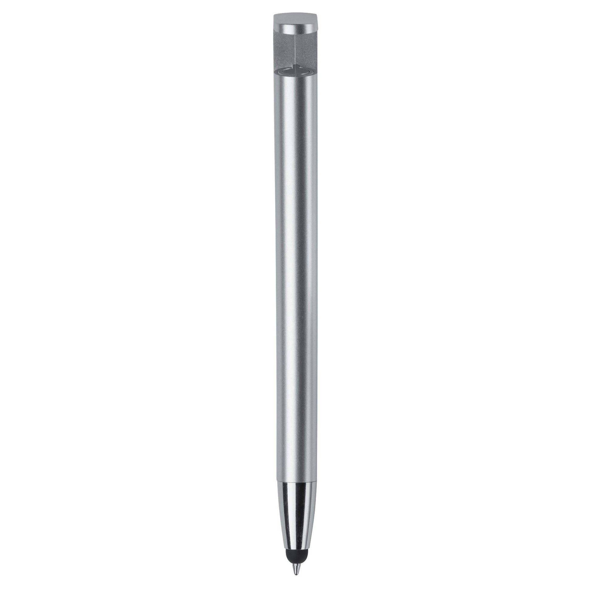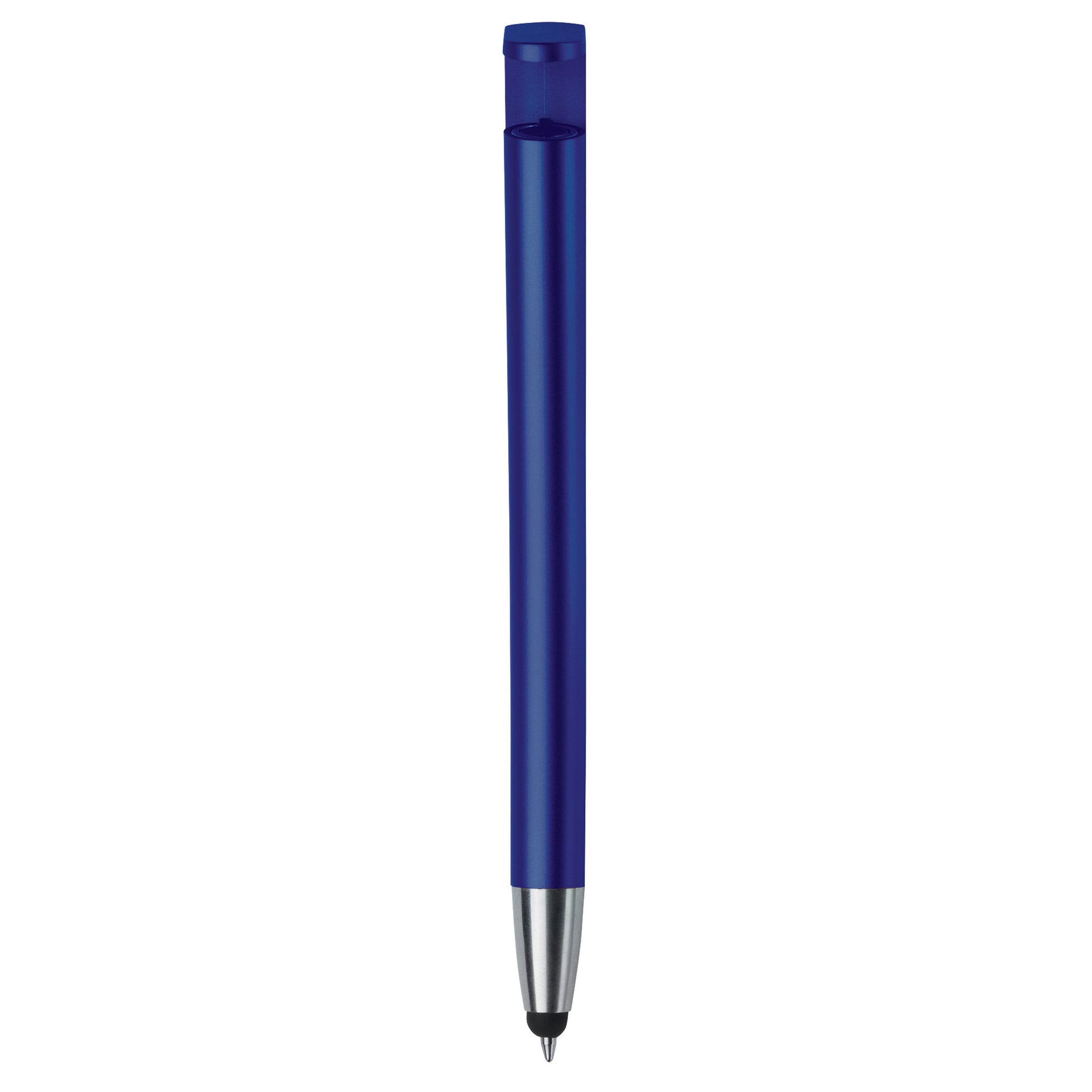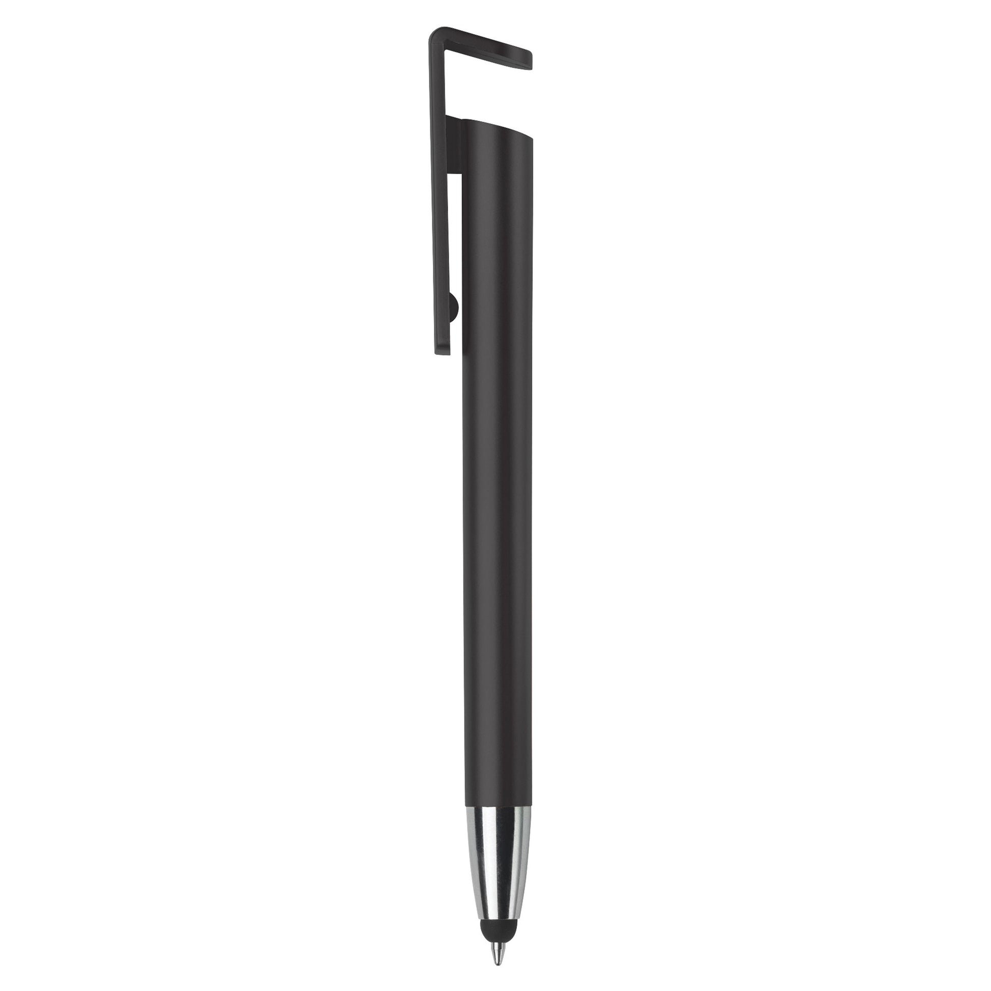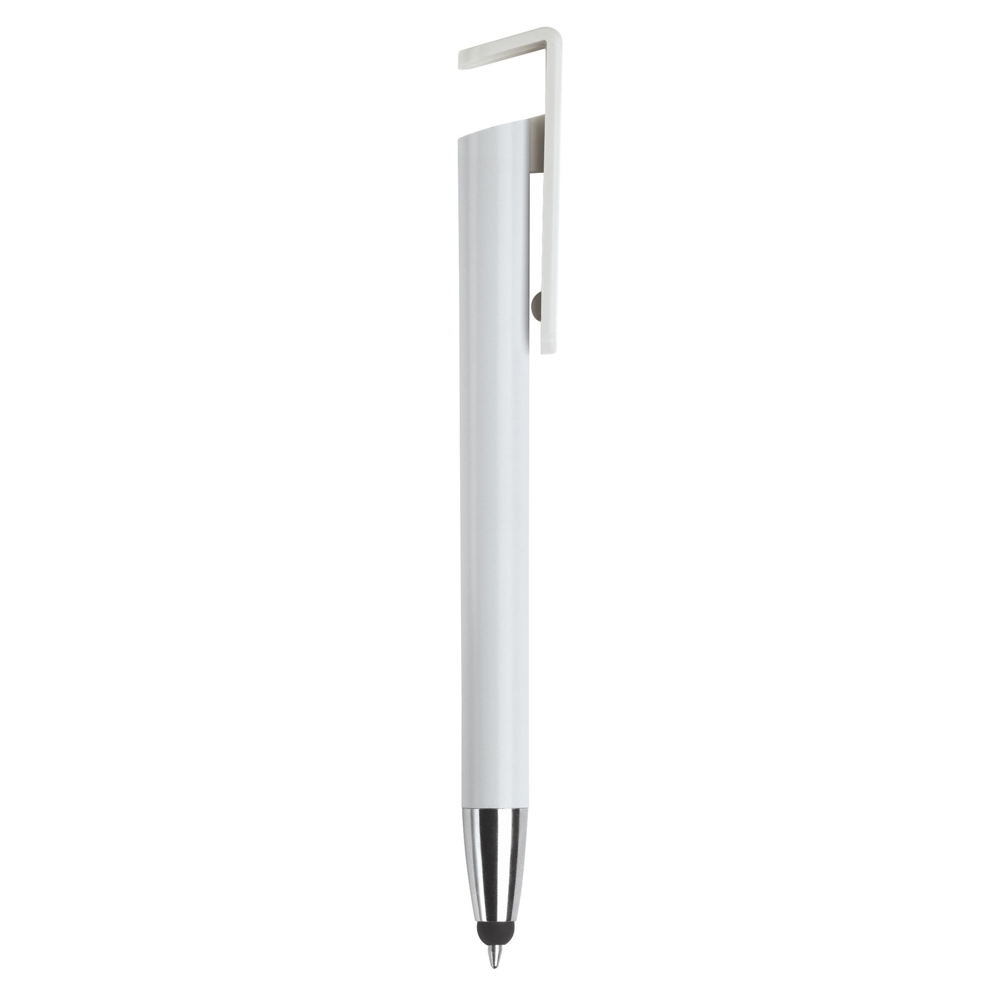 Moderner 3-in-1-Kugelschreiber mit Stylus und Smartphone-Ständer. Ein äußerst trendiges Give-away in einem klaren, modernen Design. Ausgestattet mit blau schreibender Mine.