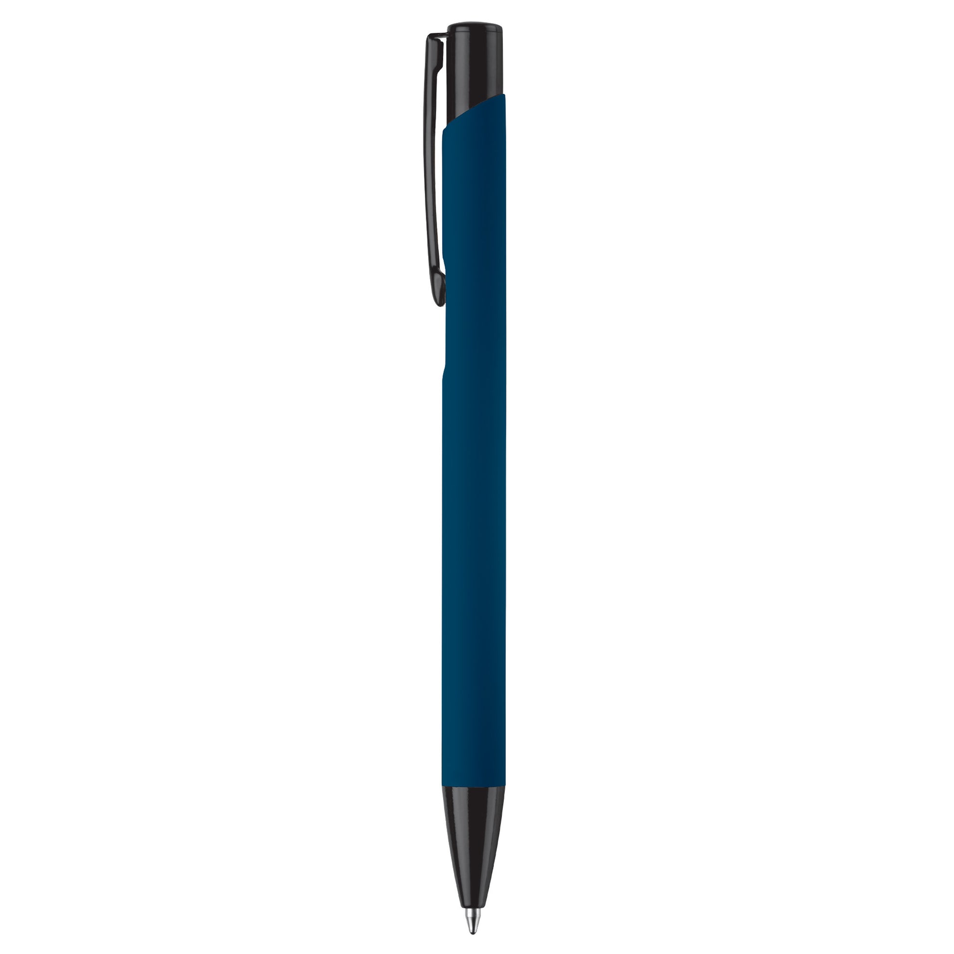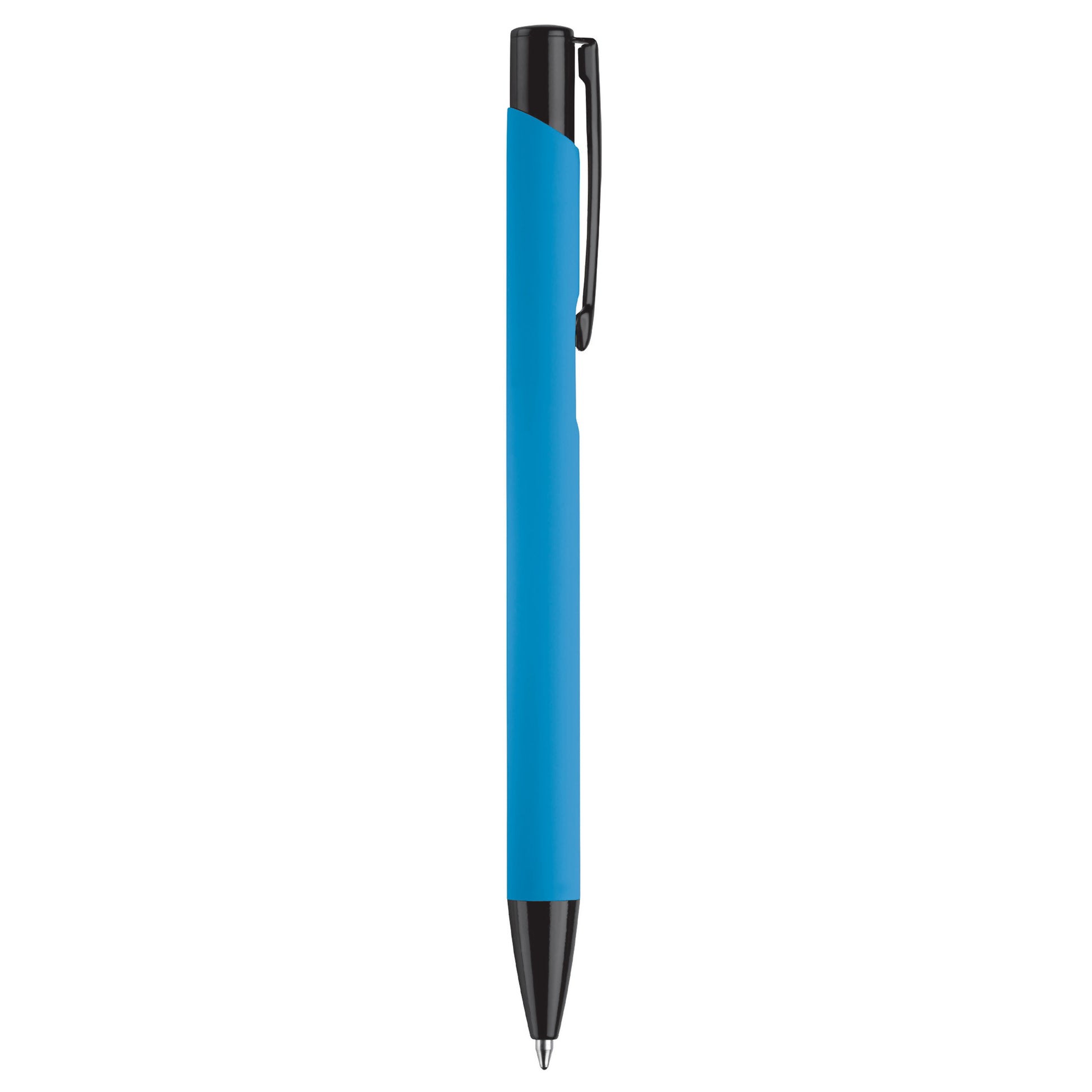 Gummierte, matte Metallkugelschreiber in trendigen Farben mit Soft-Touch-Oberfläche. Durch den gummierten Look ist er ein modernes, geschäftliches Werbegeschenk. Geeignet für Lasergravur. Mit blau schreibender Mine