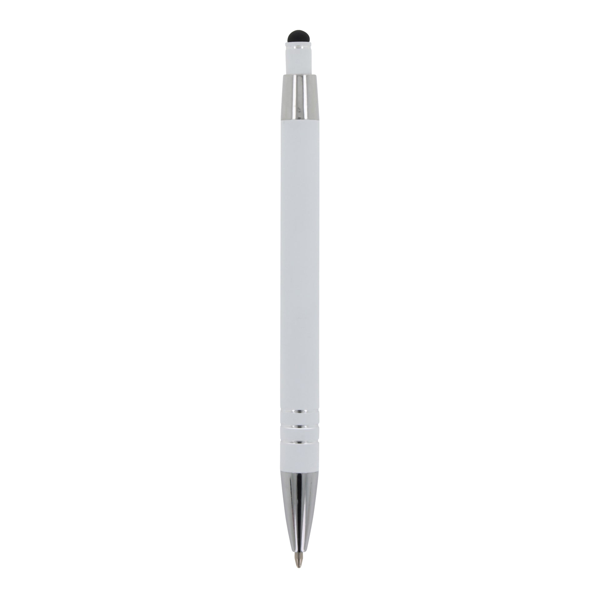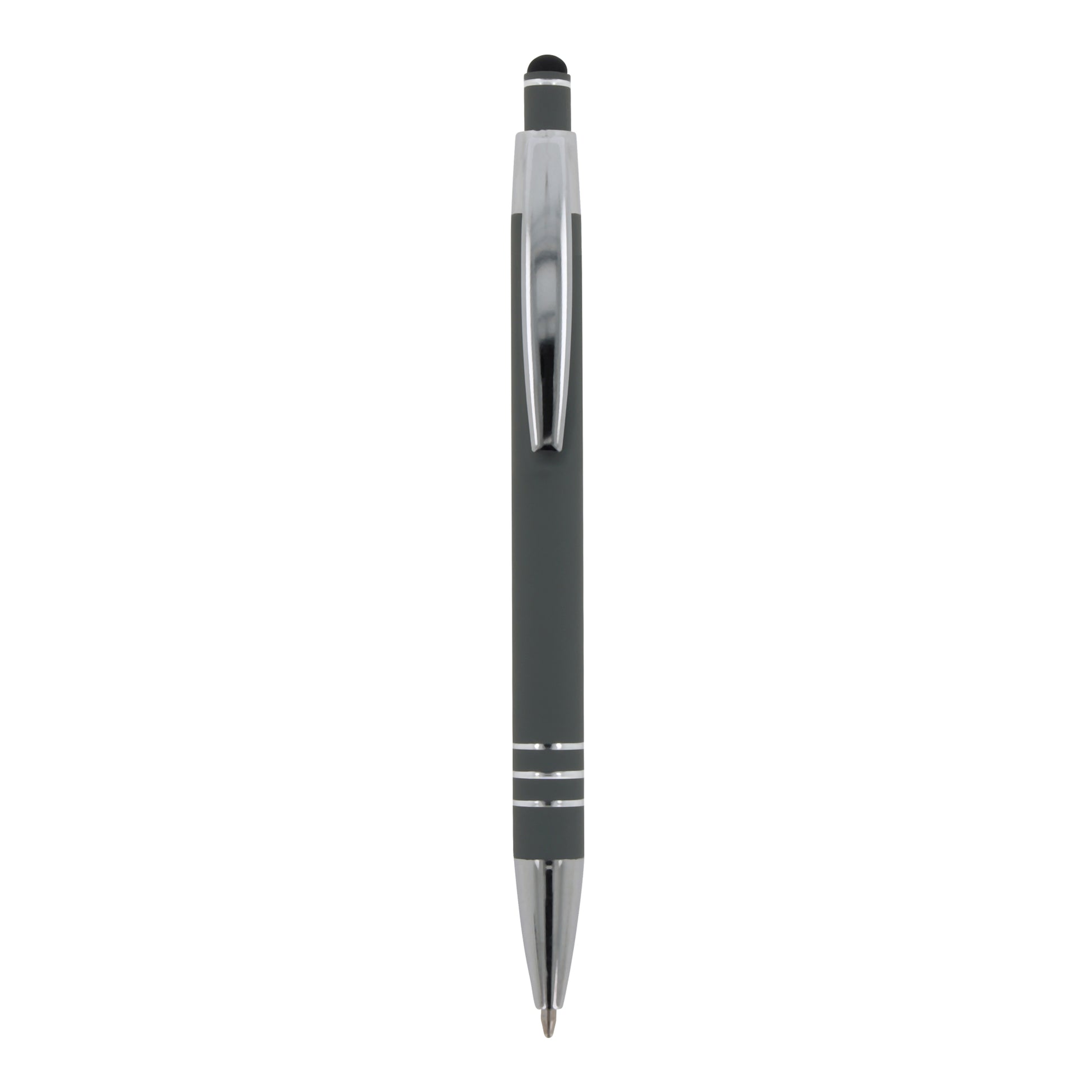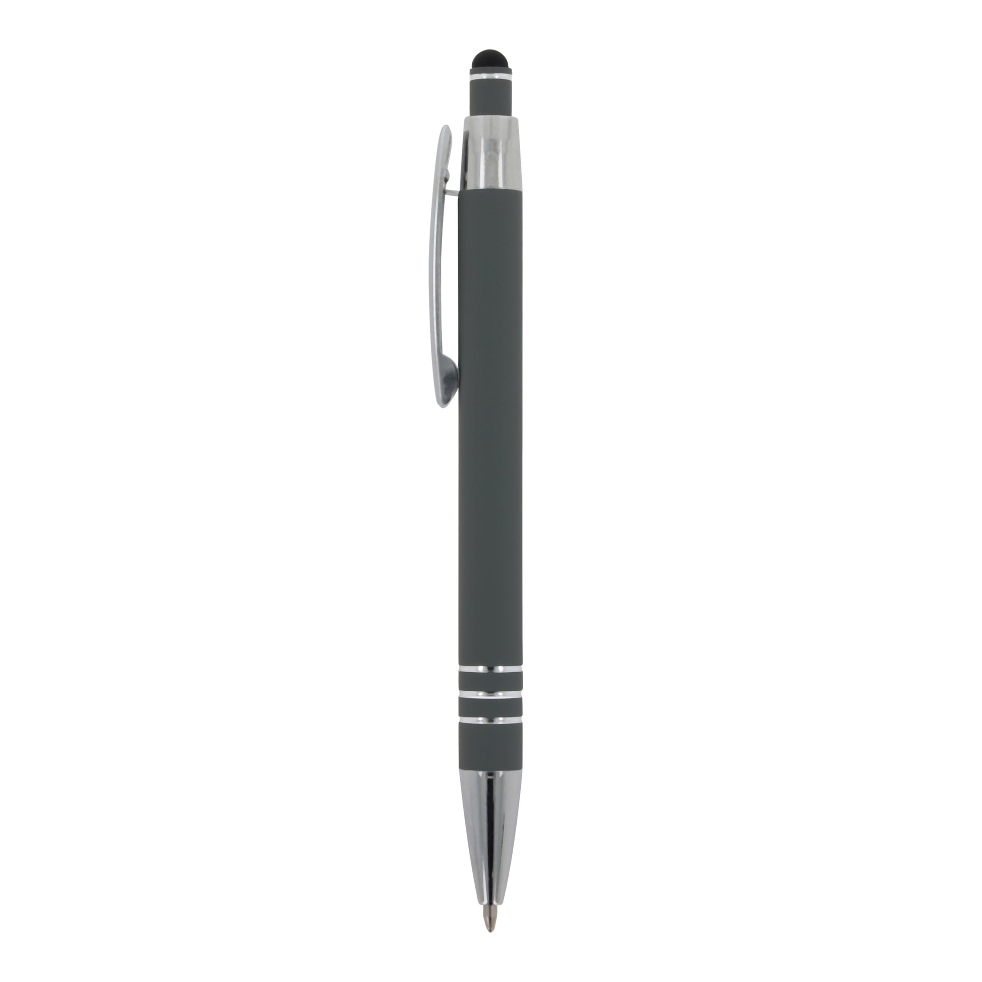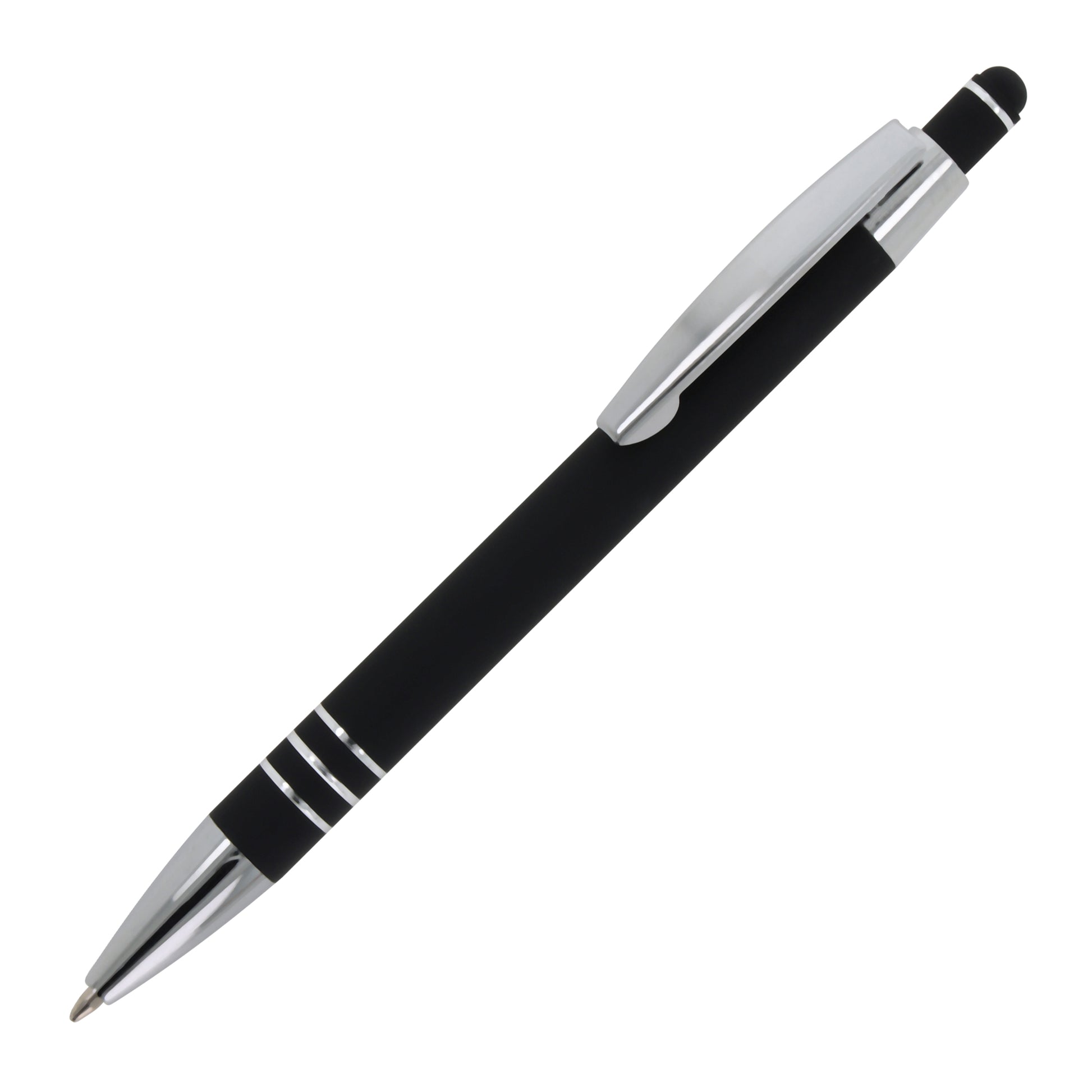 Kugelschreiber aus Aluminium mit eleganter Soft-Touch-Oberfläche und Stylus. Mit stabilem Metallclip. Schreibfarbe: Blau.