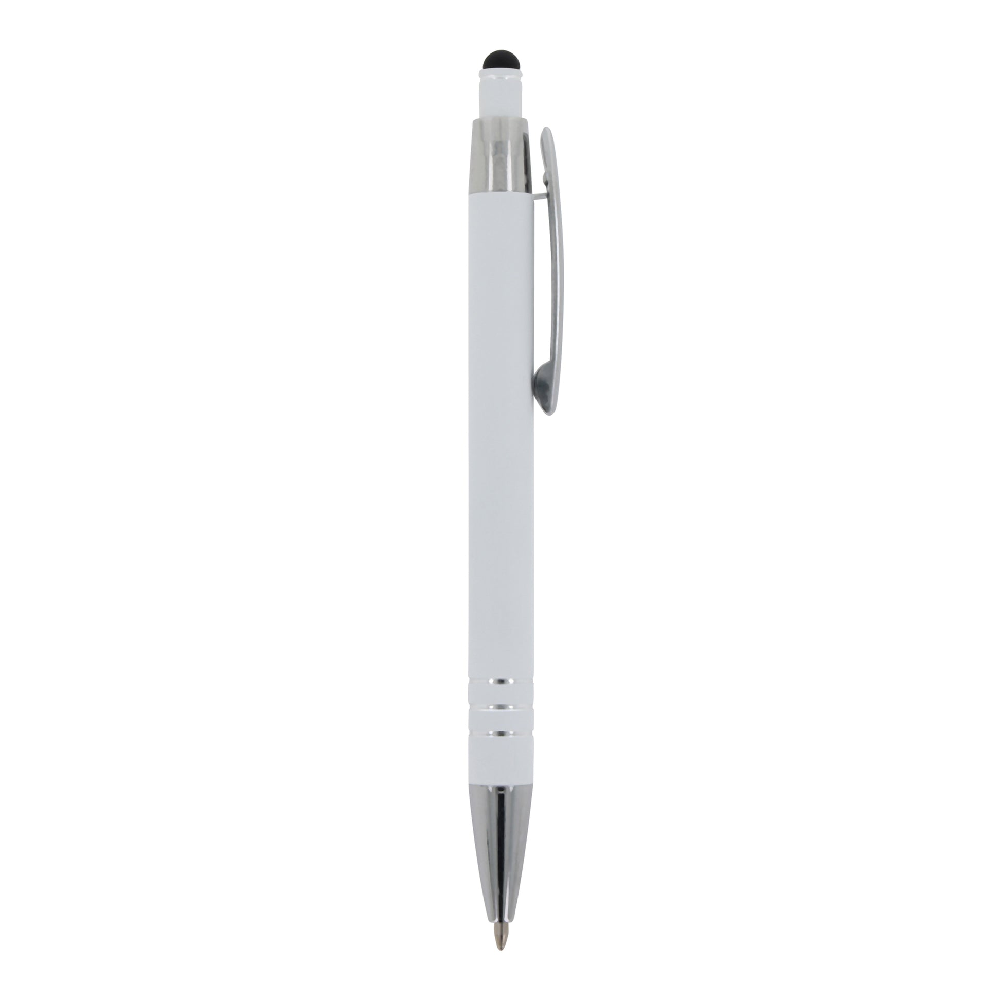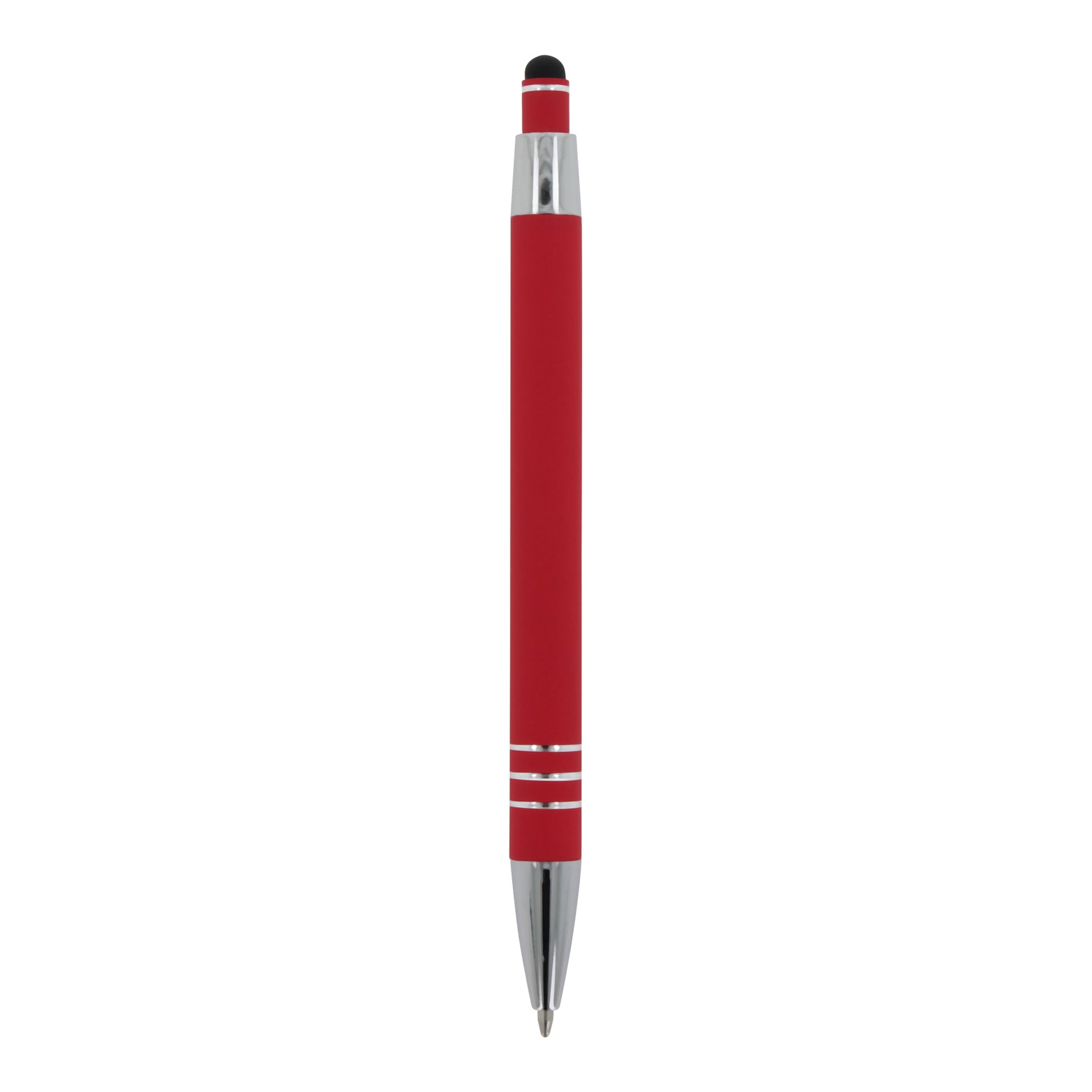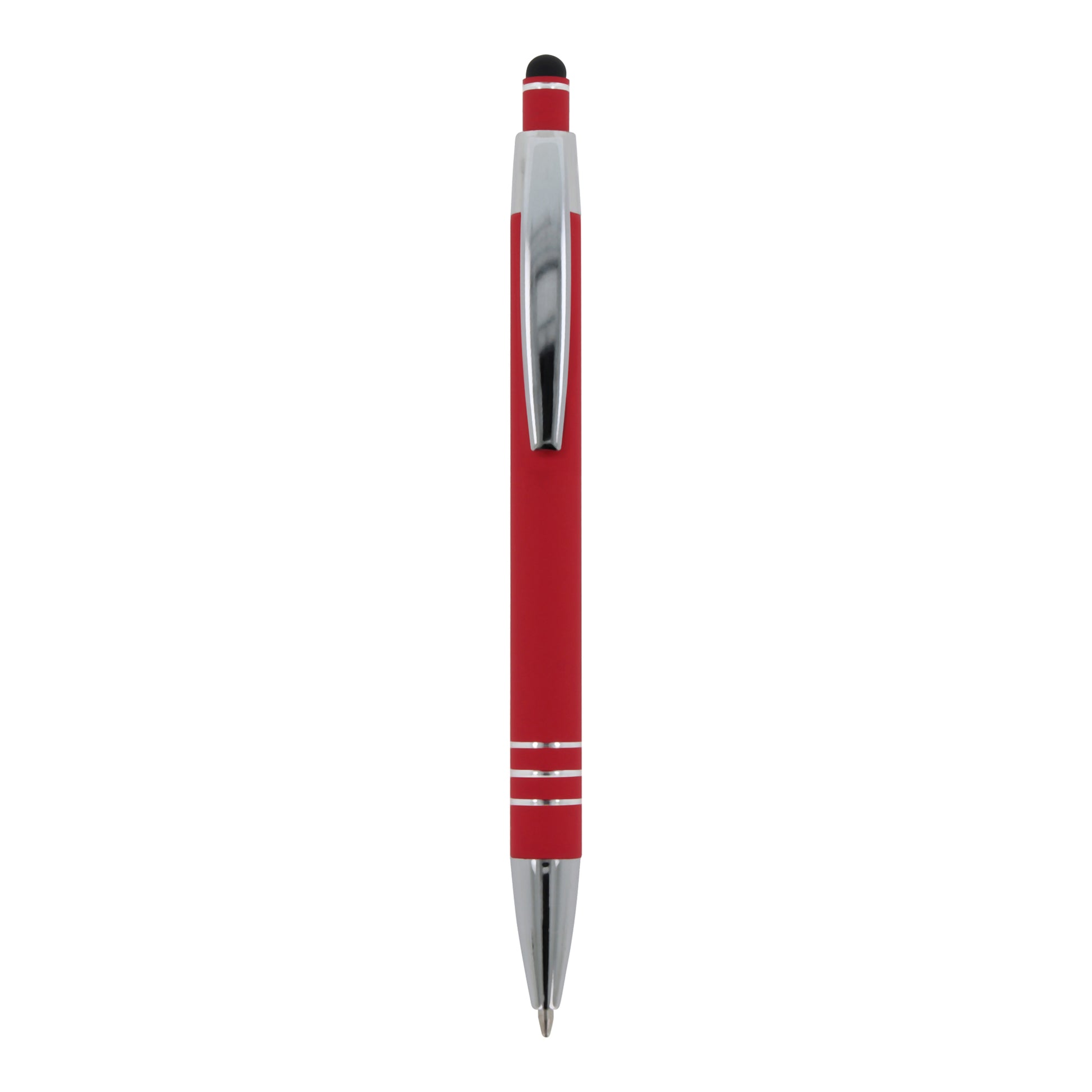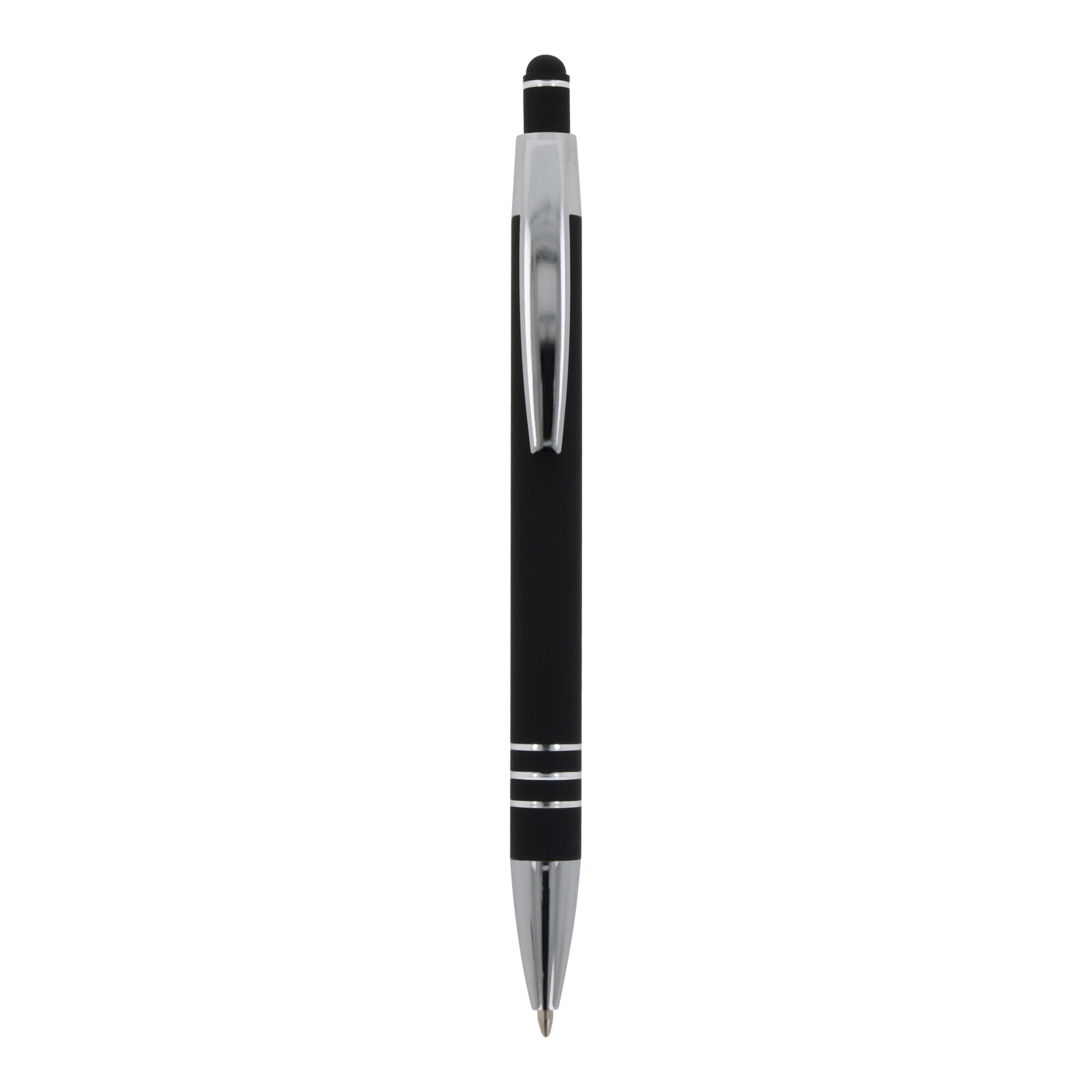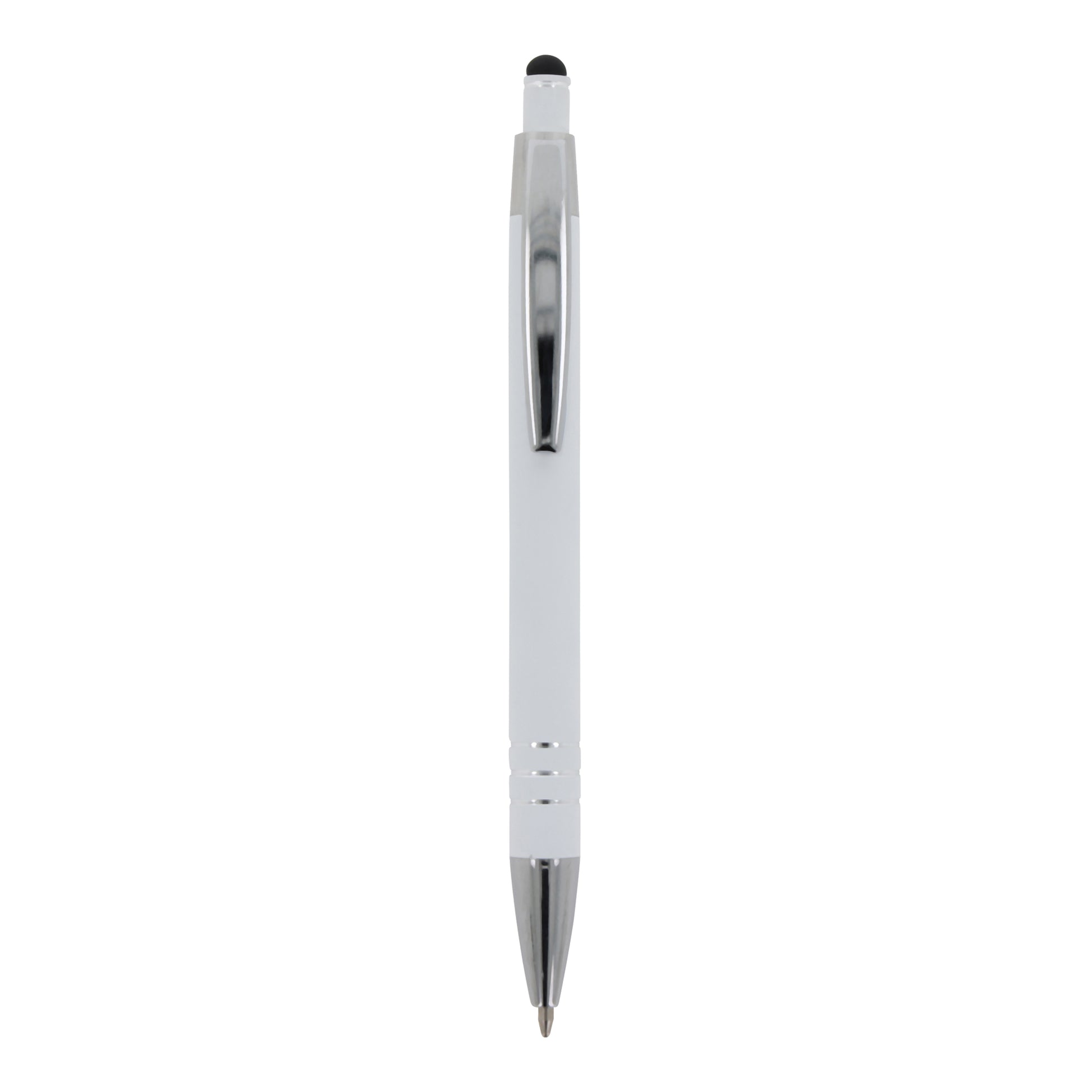 Kugelschreiber aus Aluminium mit eleganter Soft-Touch-Oberfläche und Stylus. Mit stabilem Metallclip. Schreibfarbe: Blau.