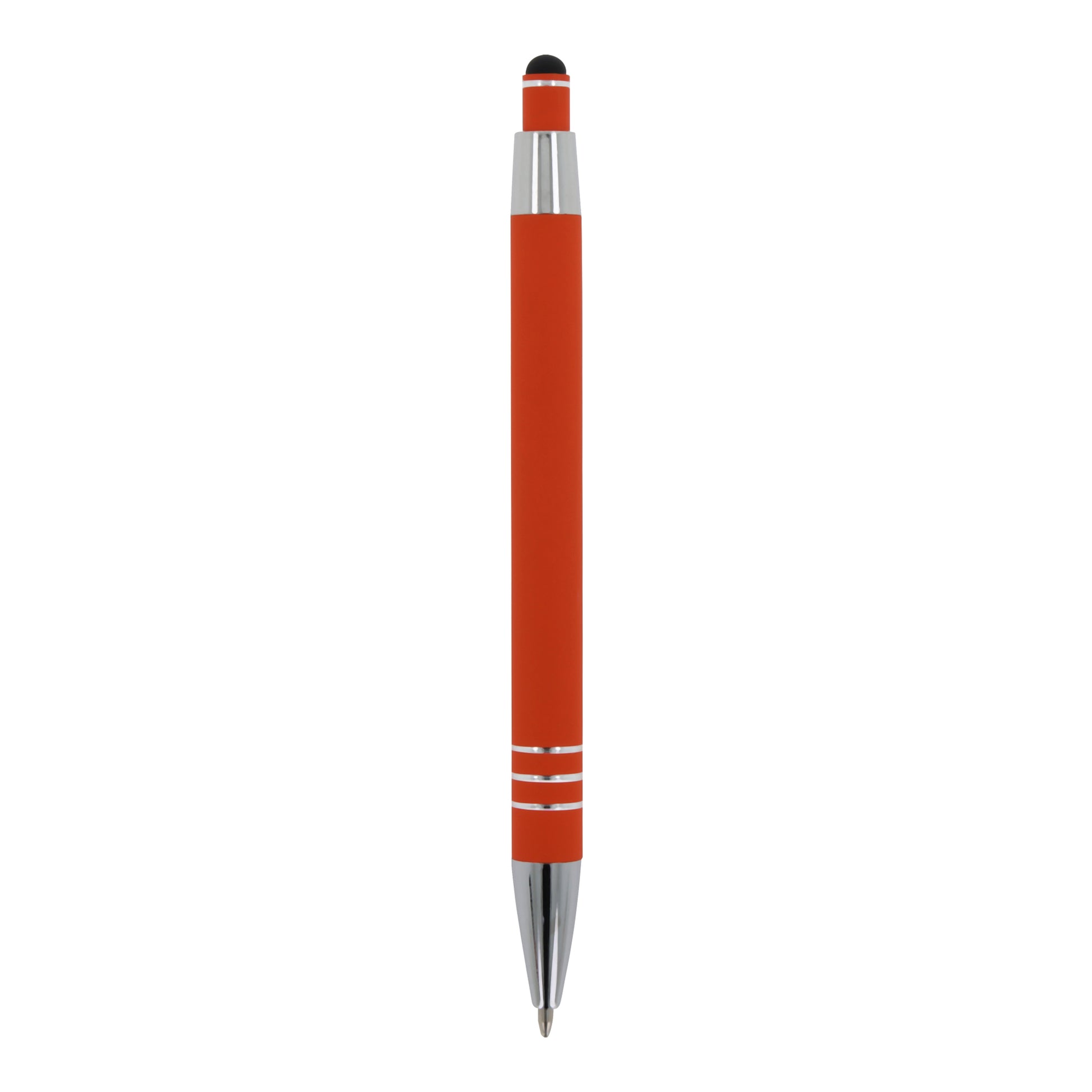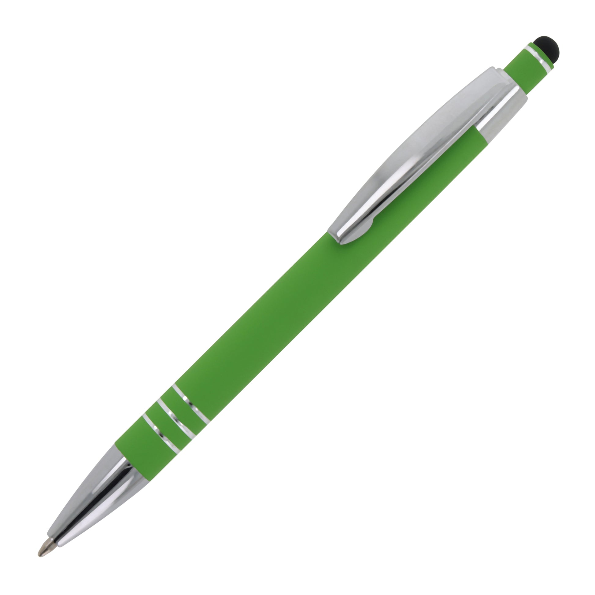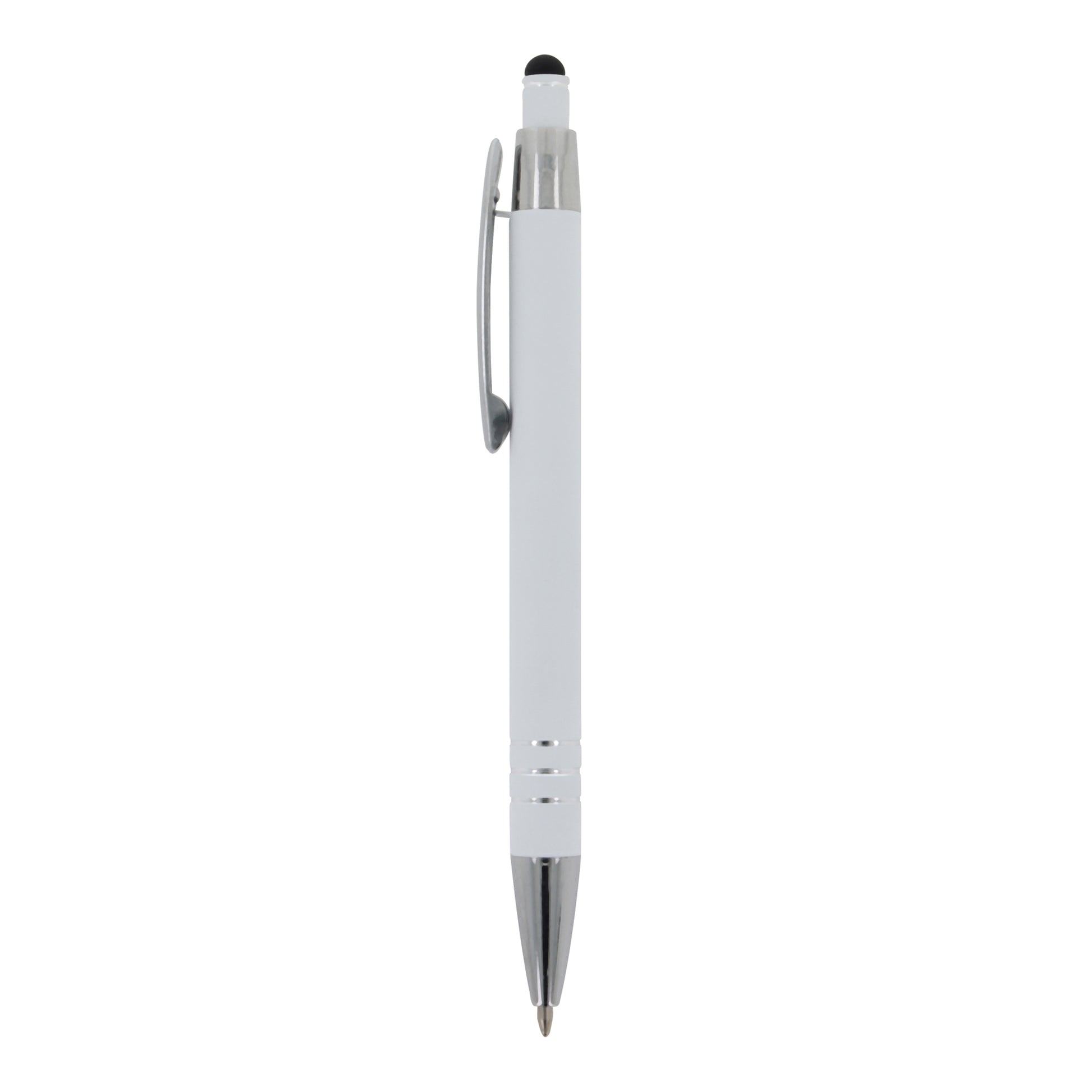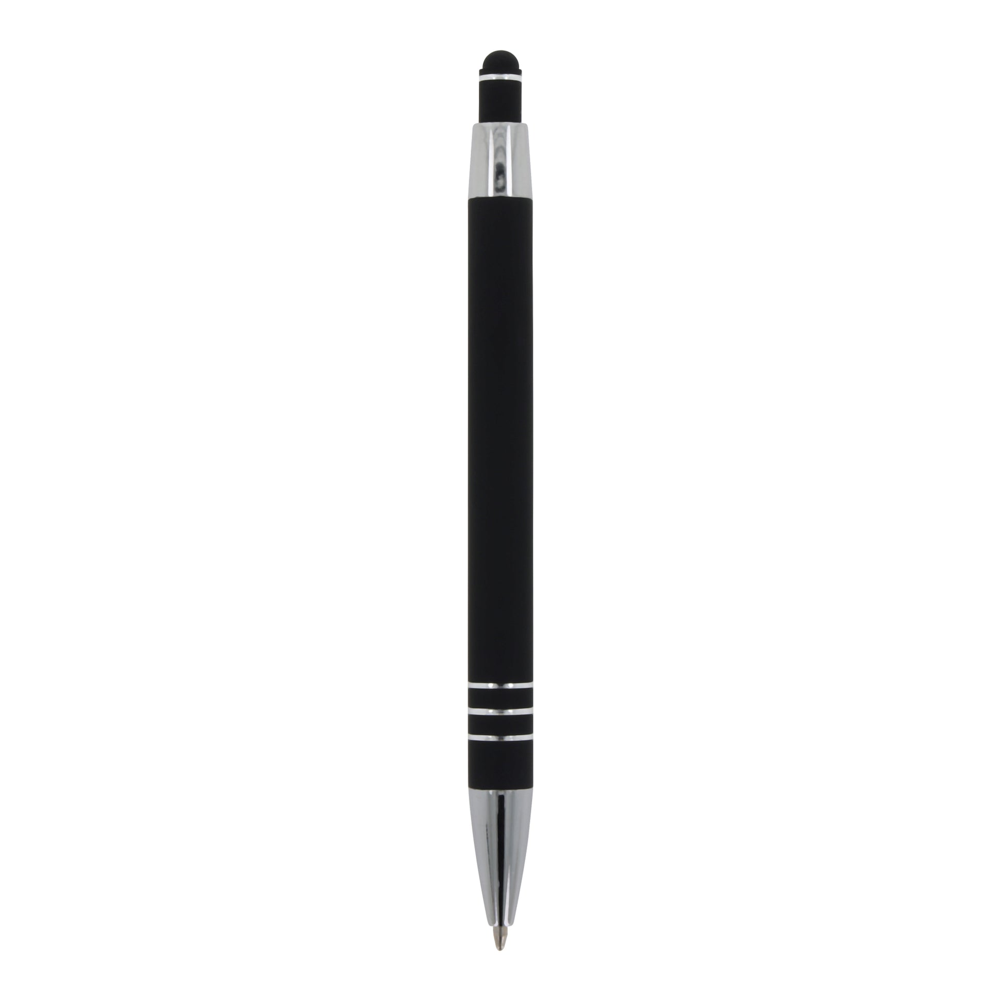 Kugelschreiber aus Aluminium mit eleganter Soft-Touch-Oberfläche und Stylus. Mit stabilem Metallclip. Schreibfarbe: Blau.