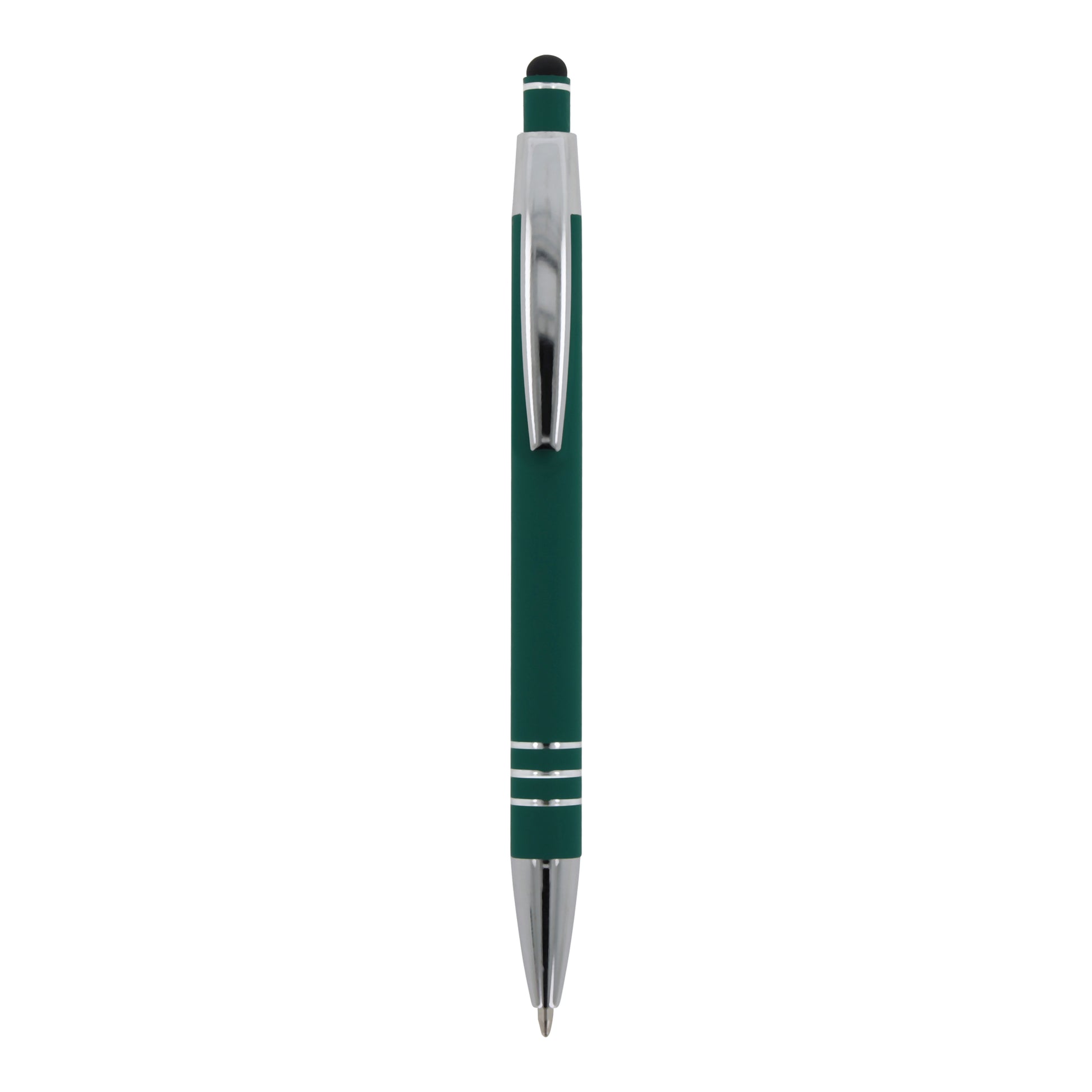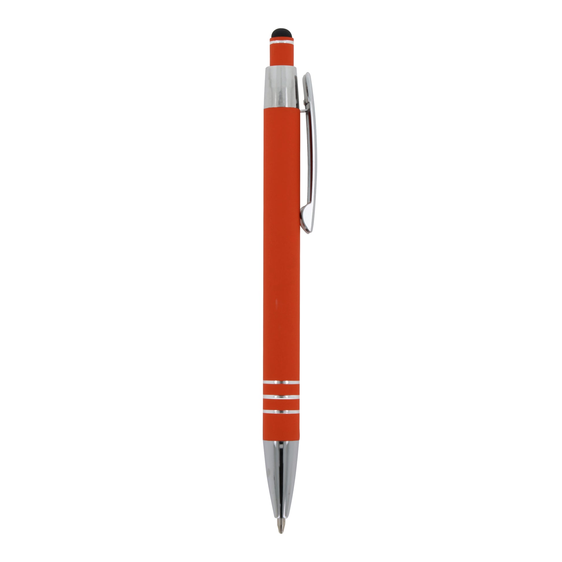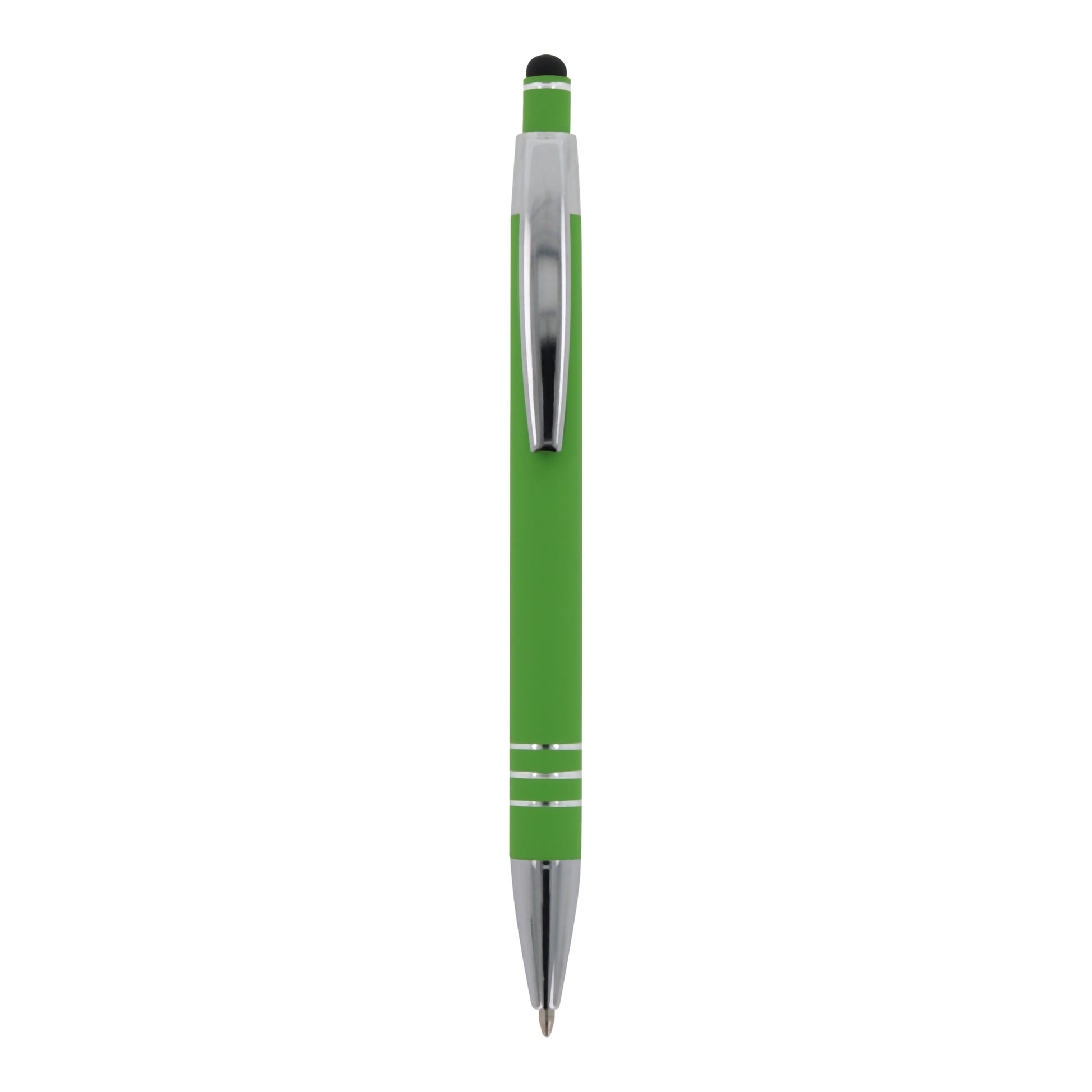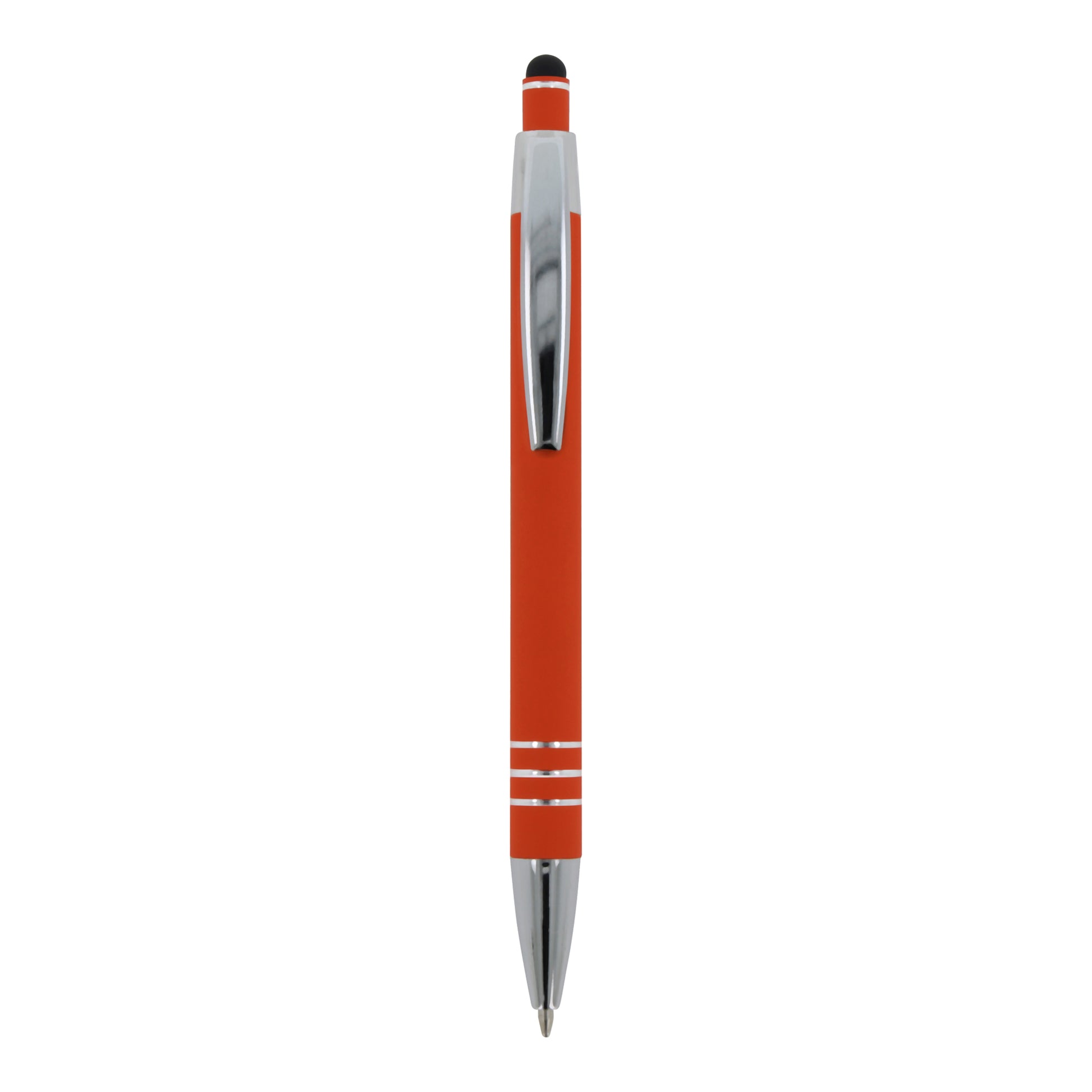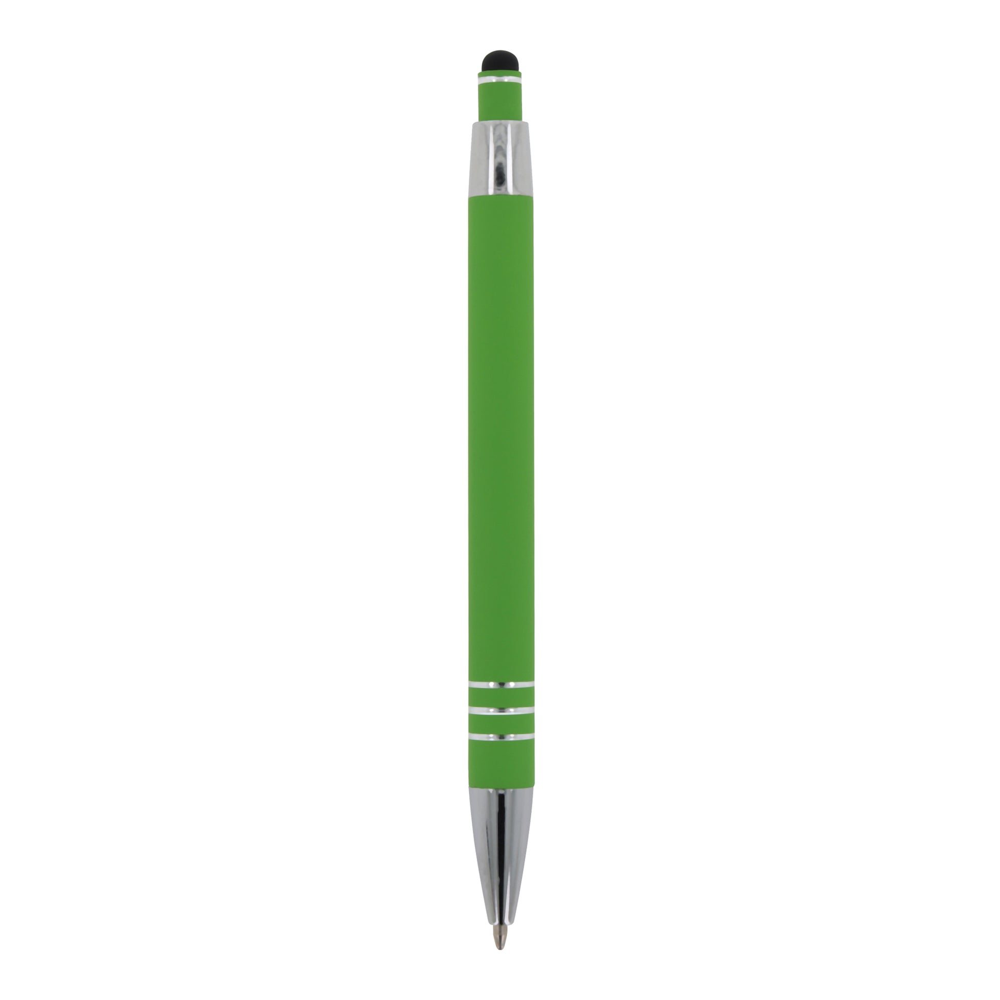 Kugelschreiber aus Aluminium mit eleganter Soft-Touch-Oberfläche und Stylus. Mit stabilem Metallclip. Schreibfarbe: Blau.