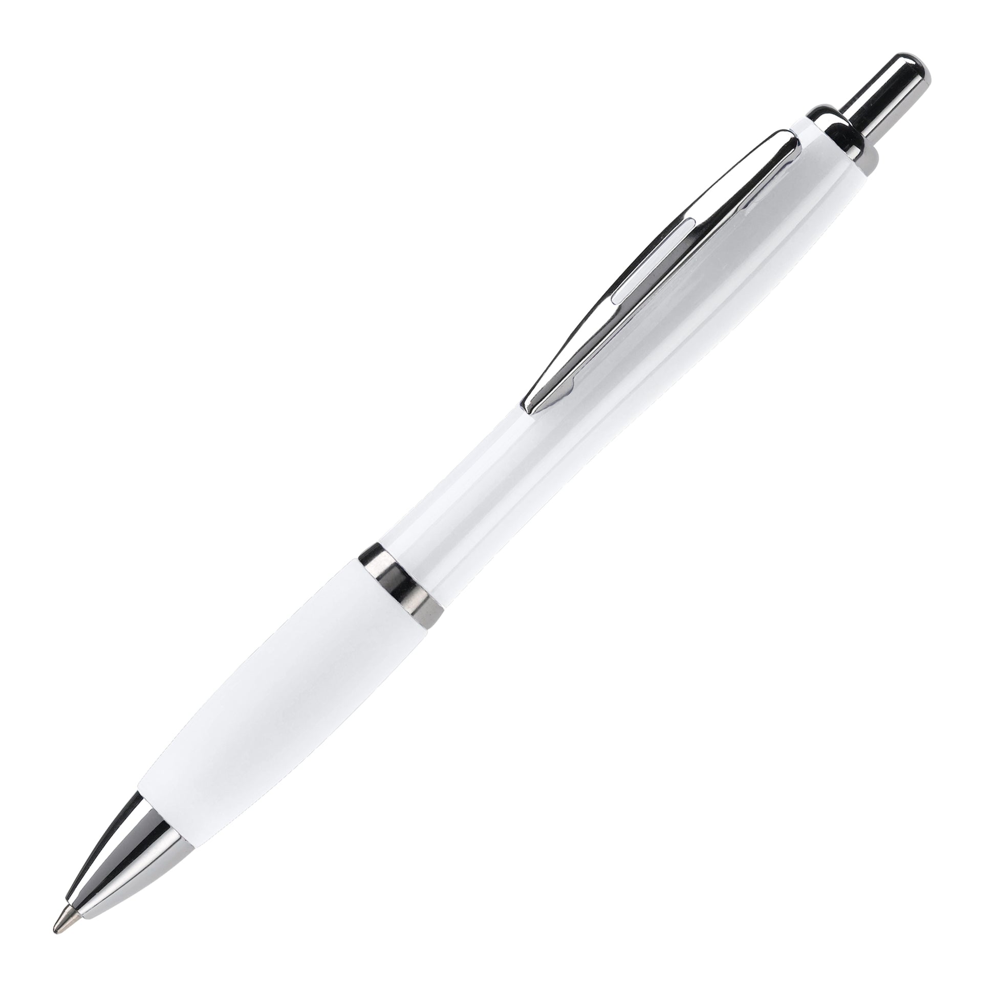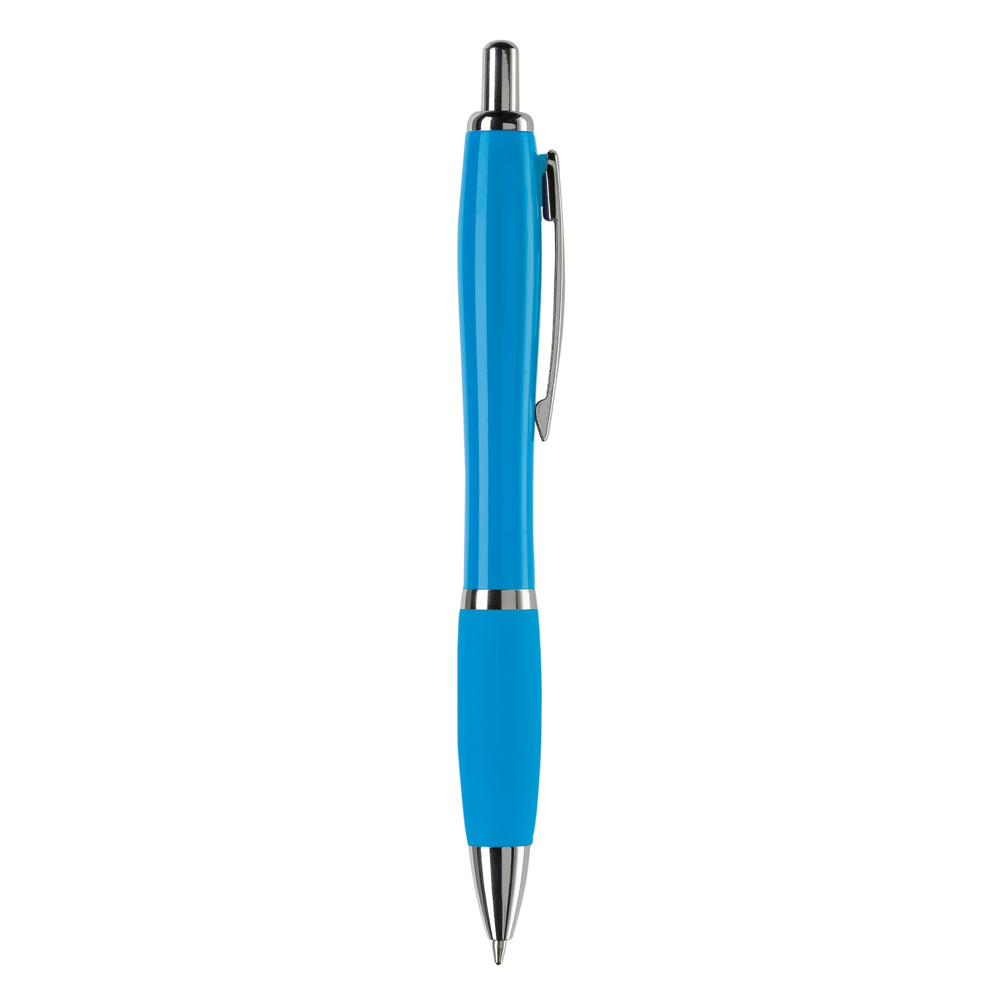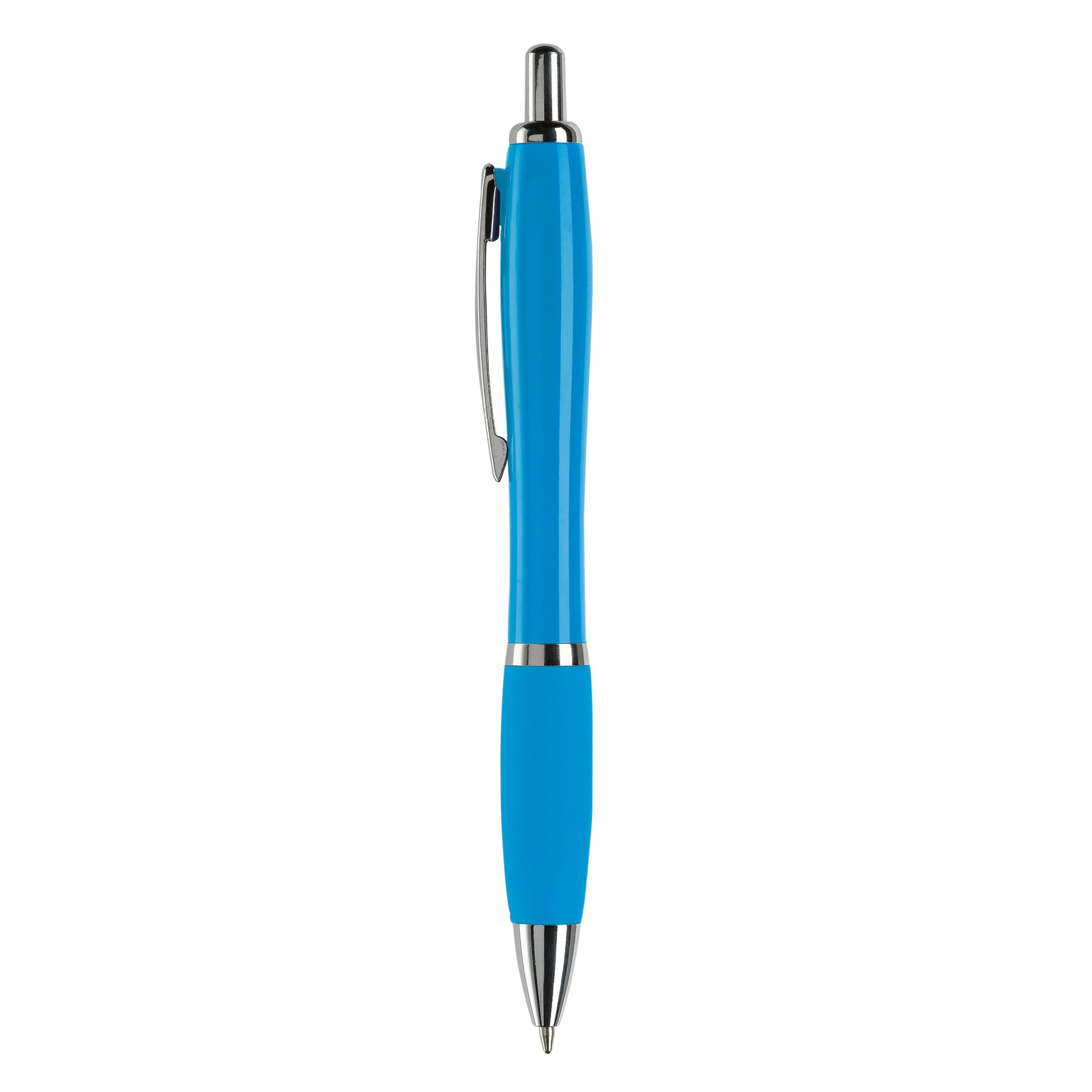 Hardcolour-Kugelschreiber mit Metallclip, Metal-Look-Druckknopf, Zwischenring und Stiftspitze. Der Stift enthält eine blau schreibende Jumbo-Mine. Ab 10.000 Stück sind andere Farbkombinationen möglich.