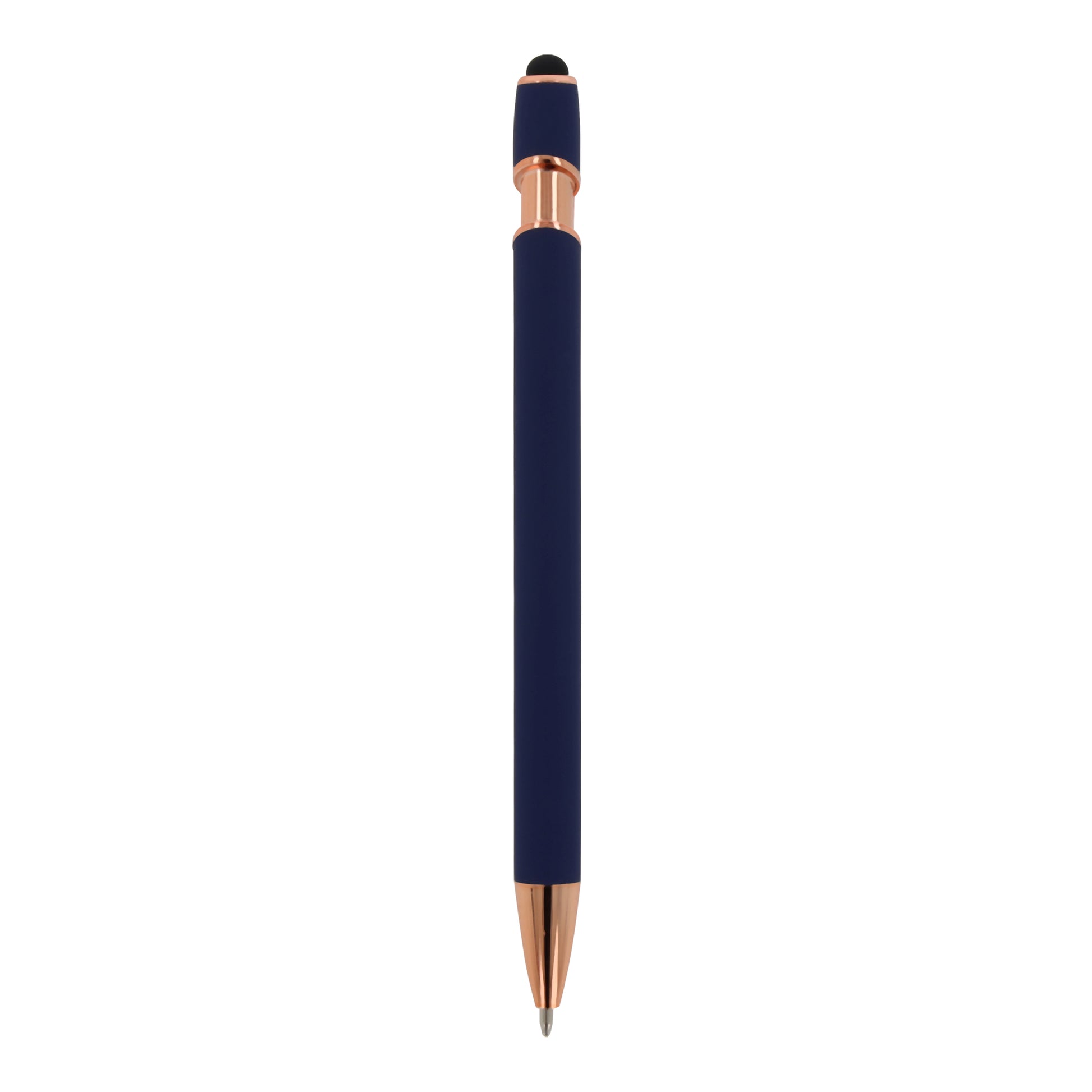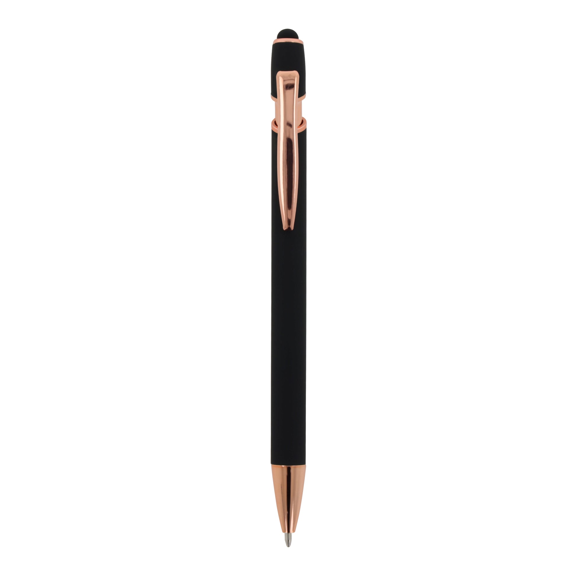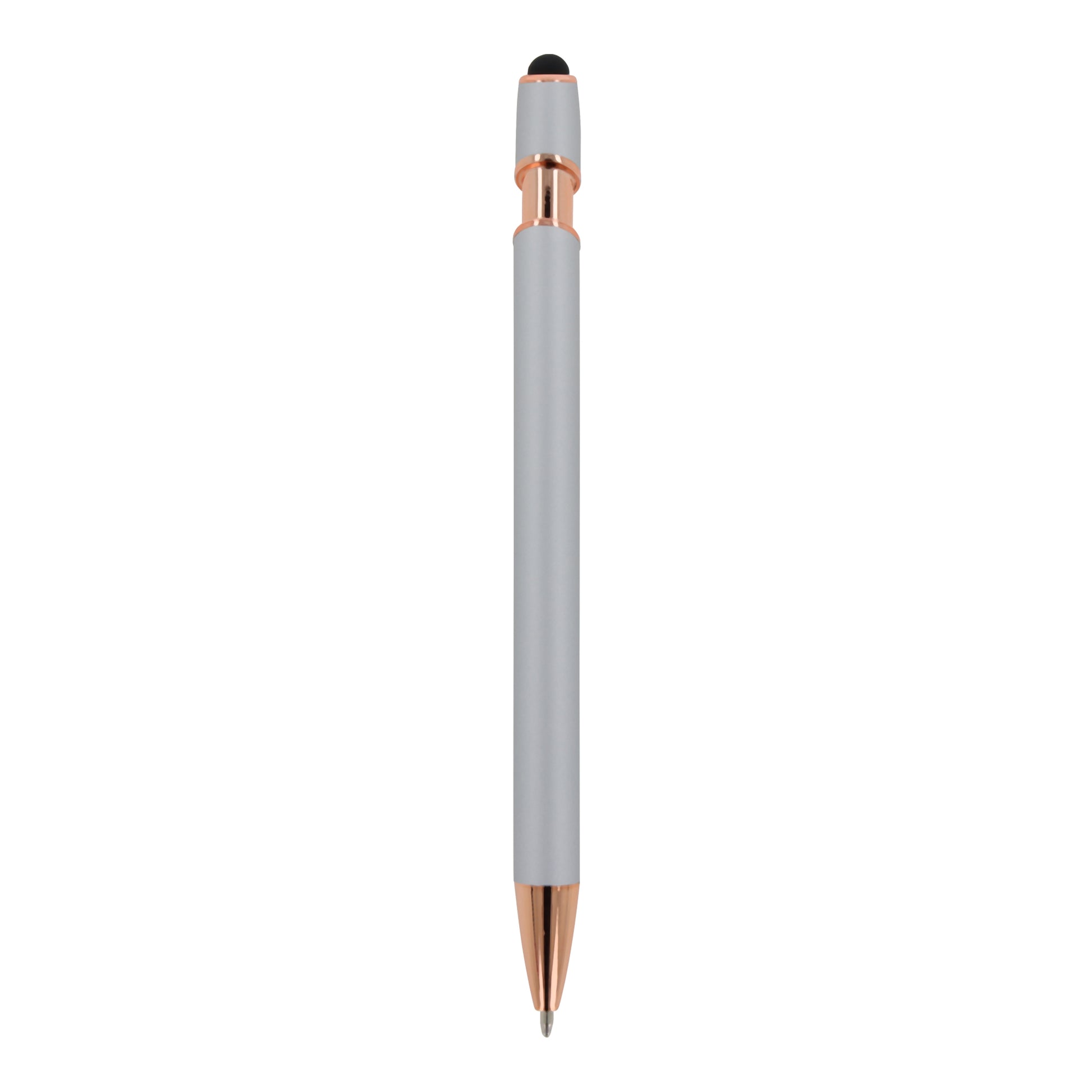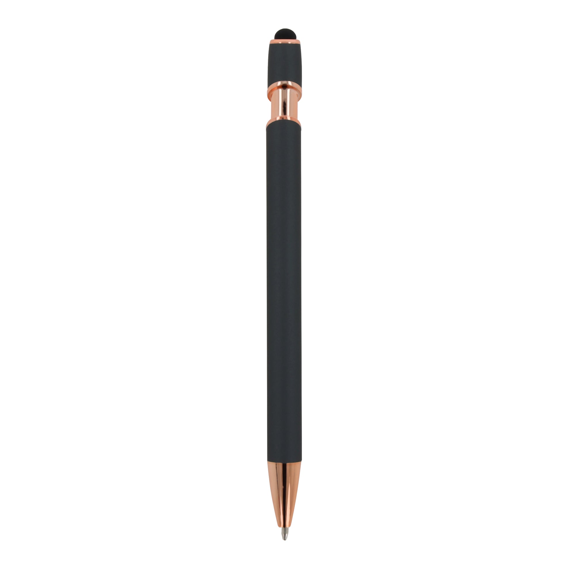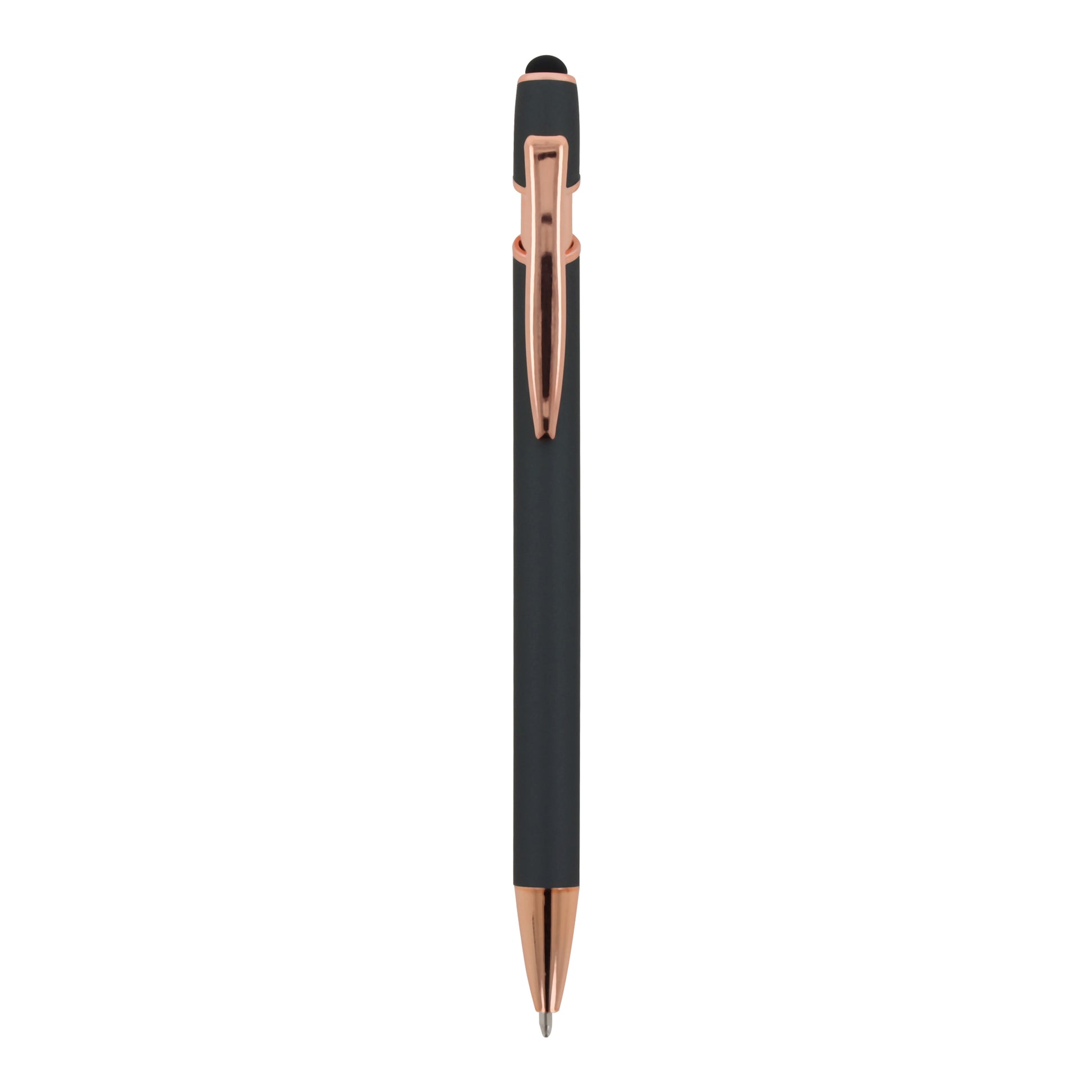 Roségoldener Aluminium-Kugelschreiber mit eleganter Soft-Touch-Oberfläche und Stylus.