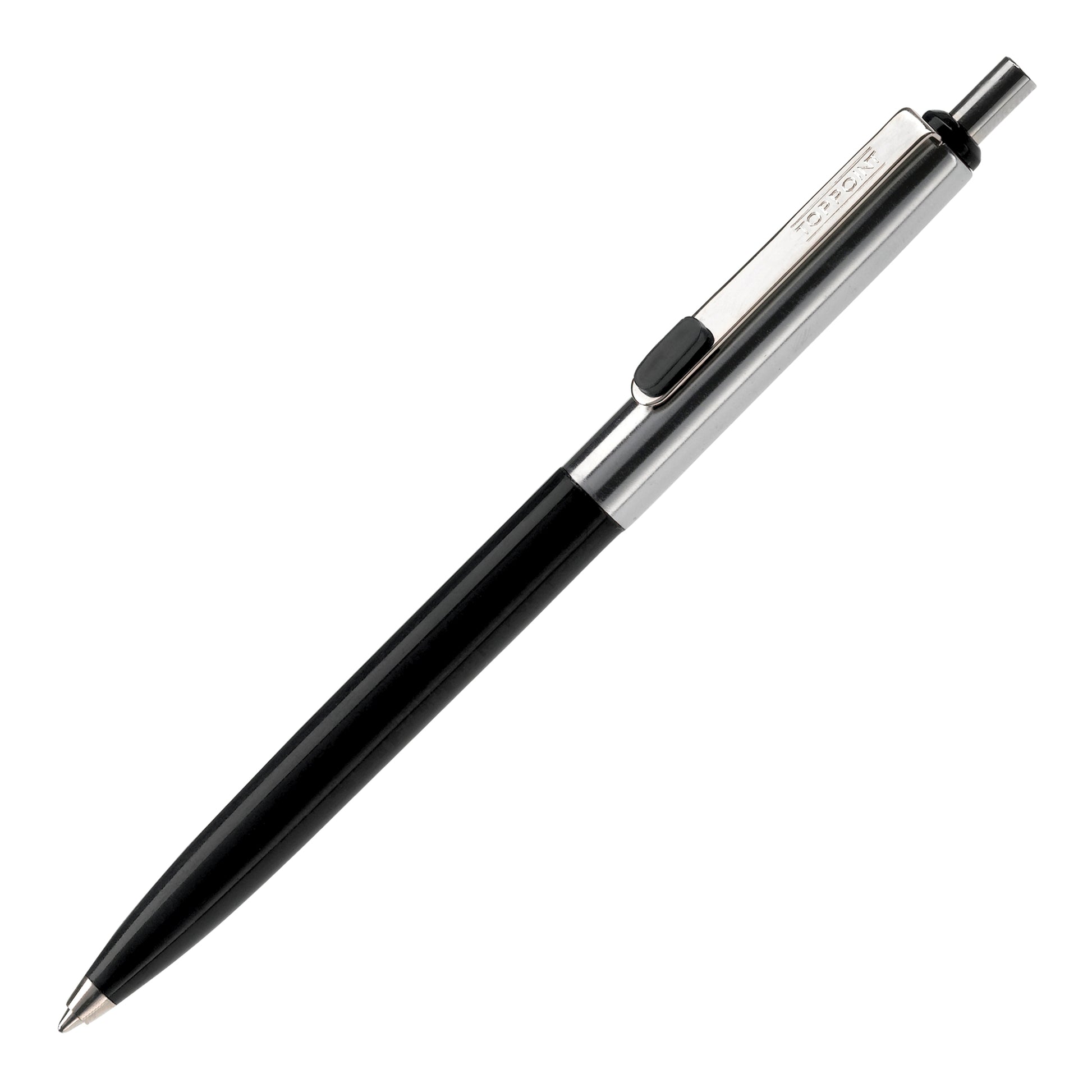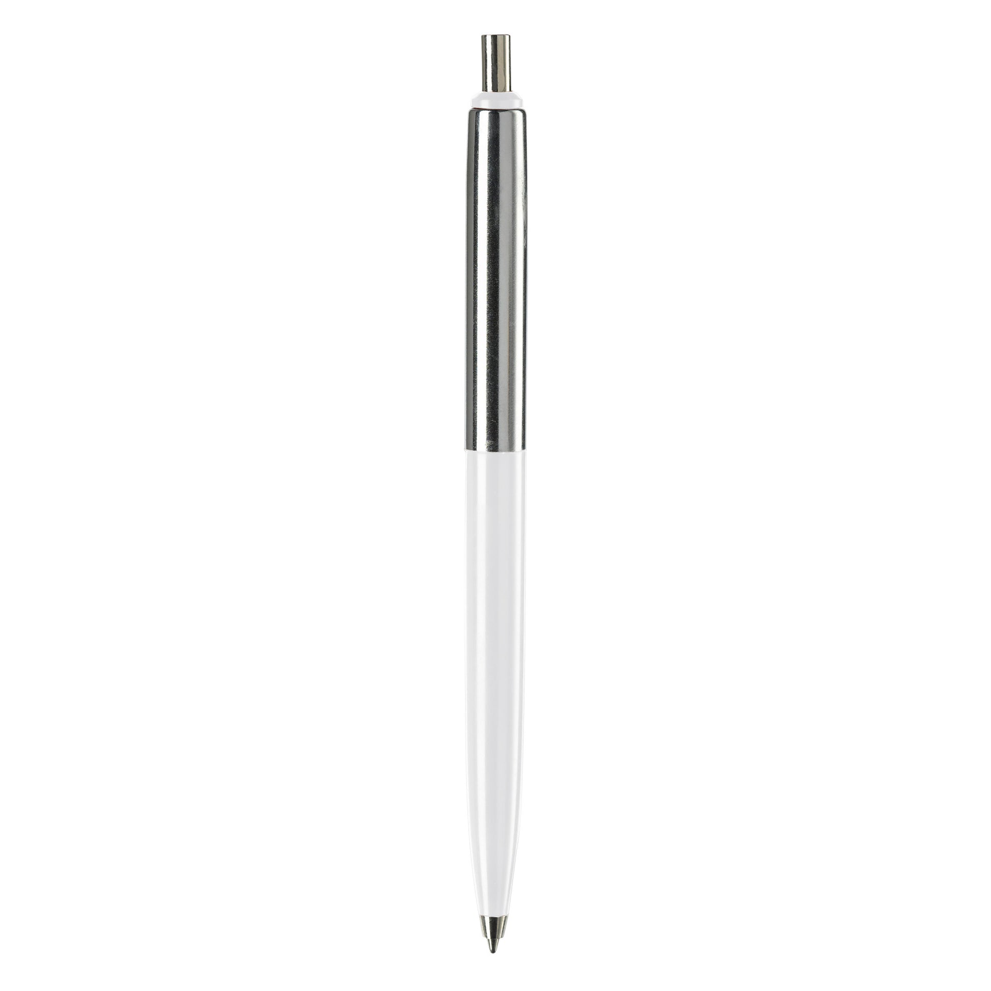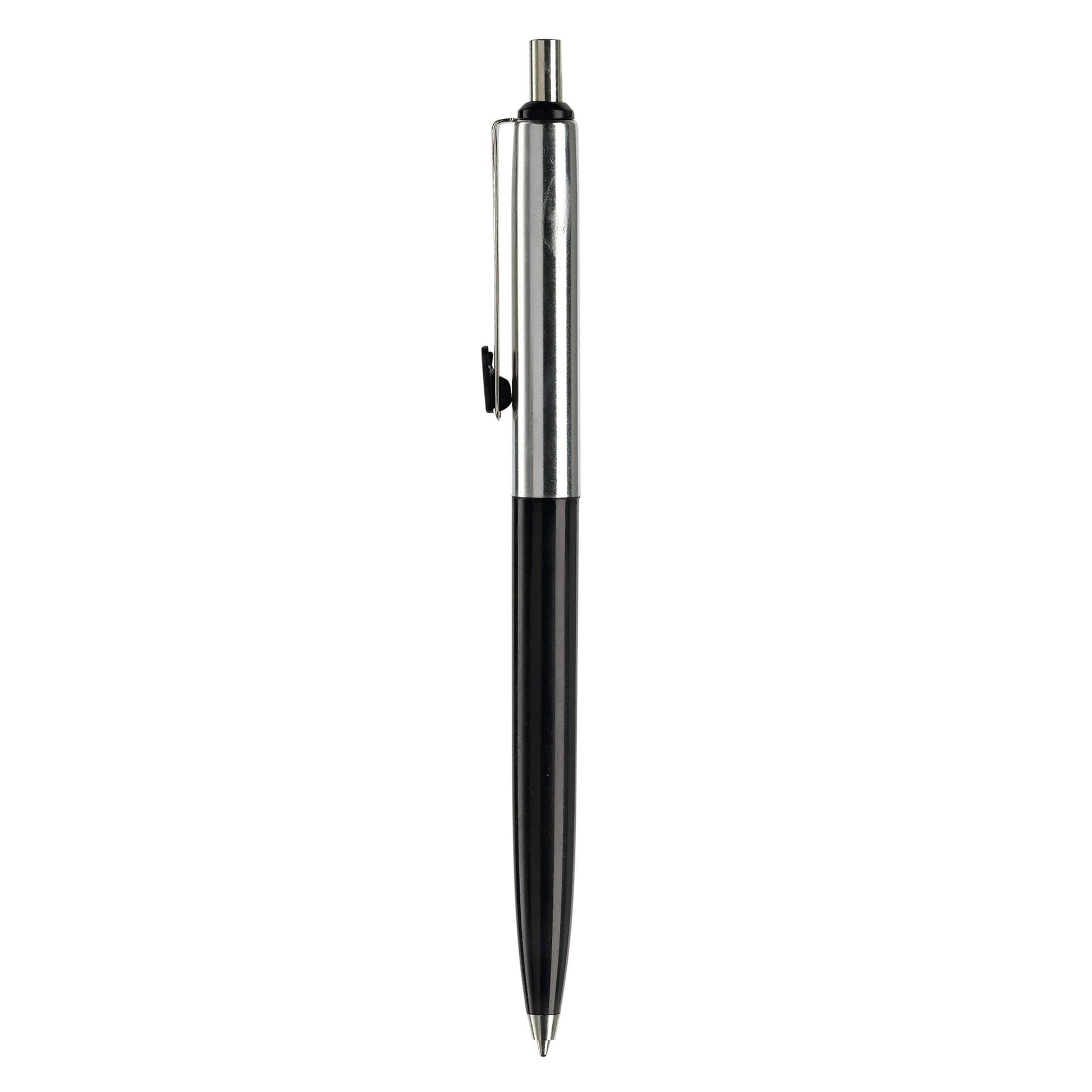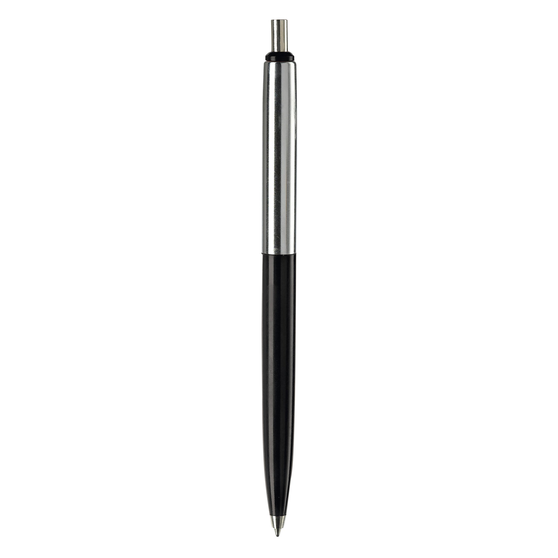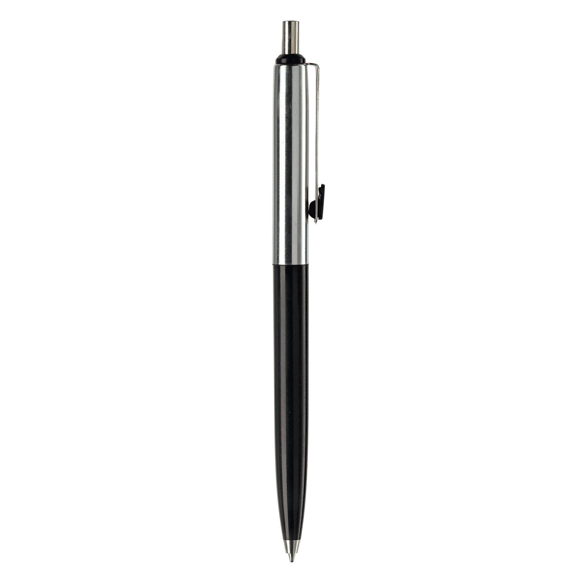 Metallfarbener Kugelschreiber mit verchromten Elementen. Ausgestattet mit einer Metall-Jumbo-Mine mit blau schreibender Tinte. Auch mit Lasergravur (in Grau) erhältlich.