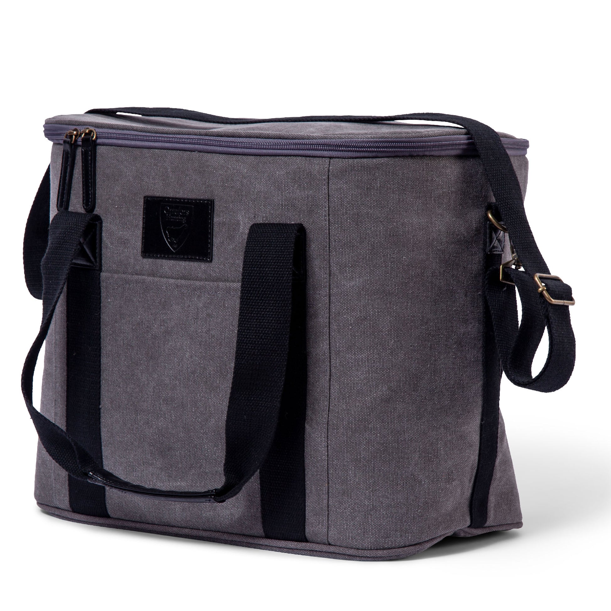 Große, strapazierfähige Kühltasche aus robustem Canvas (27 Liter) aus der Orrefors Hunting Kollektion. Die Außenhülle besteht aus widerstandsfähigem Canvas und ist mit stabilen Tragegriffen sowie einem verstellbaren, leicht abnehmbaren Schultergurt ausgestattet.