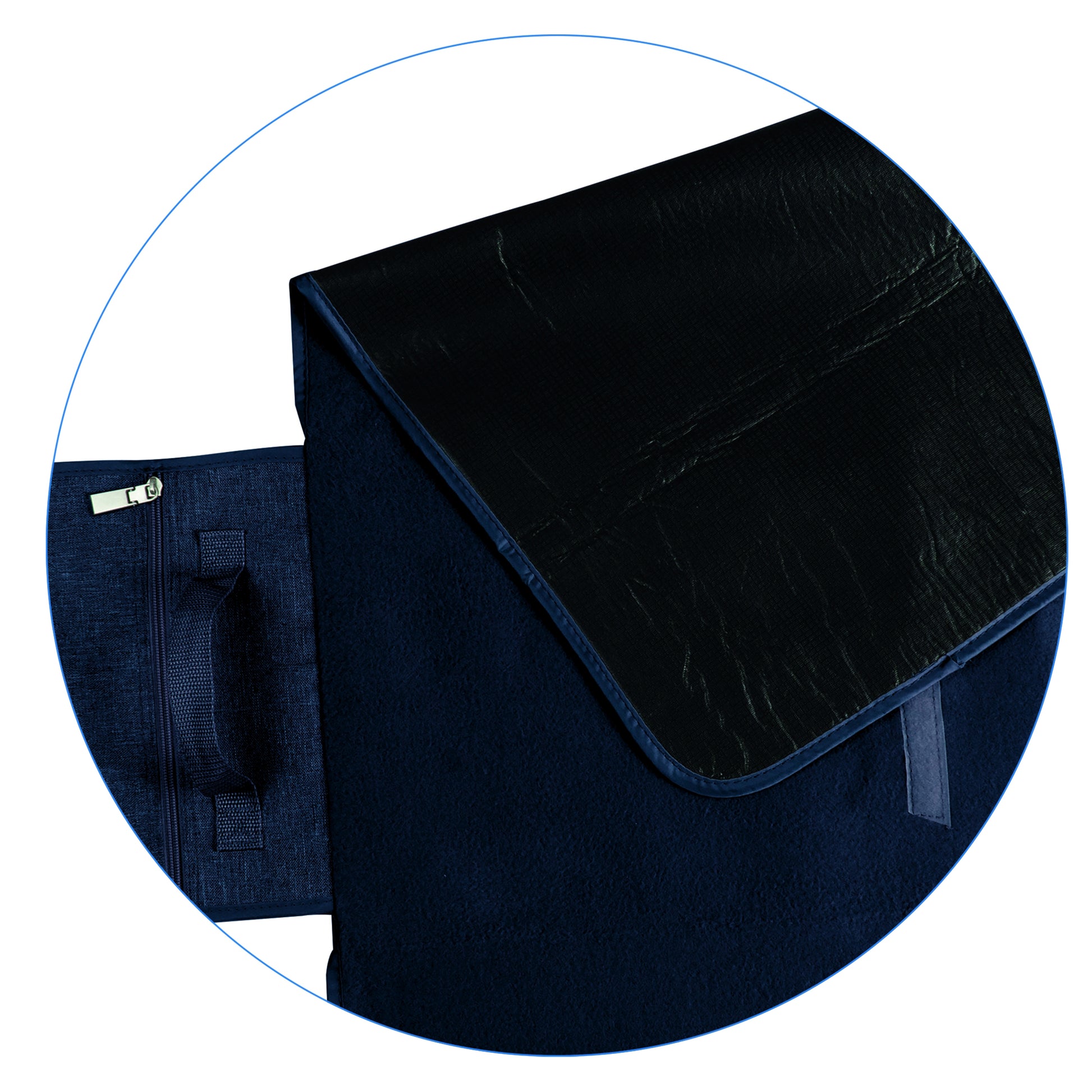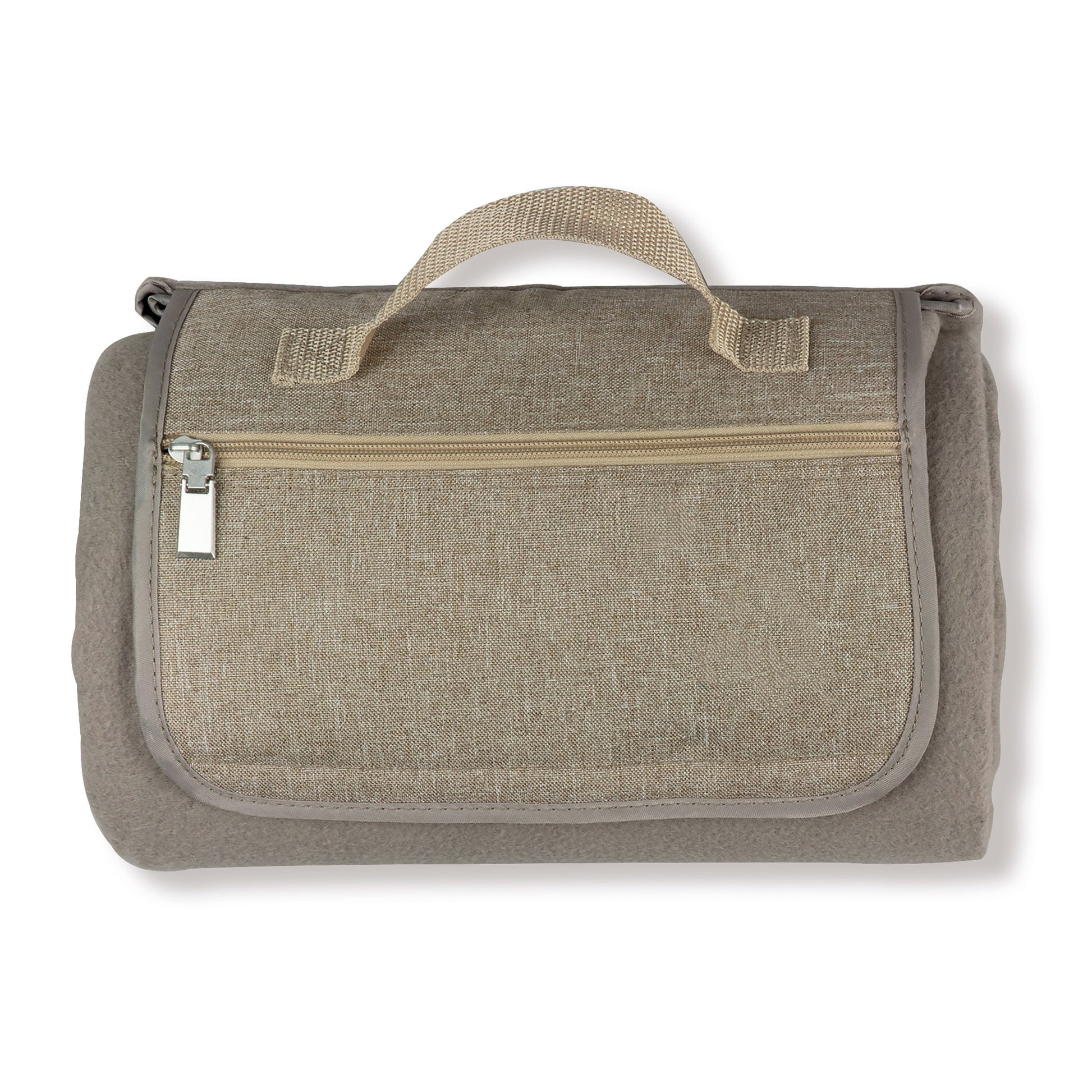 Bequeme Picknickdecke aus weichem Fleece mit wasserabweisender Rückseite. Ein integriertes Reißverschlussfach eignet sich ideal zur Aufbewahrung kleiner Gegenstände, während der Tragegriff einen einfachen und komfortablen Transport ermöglicht.