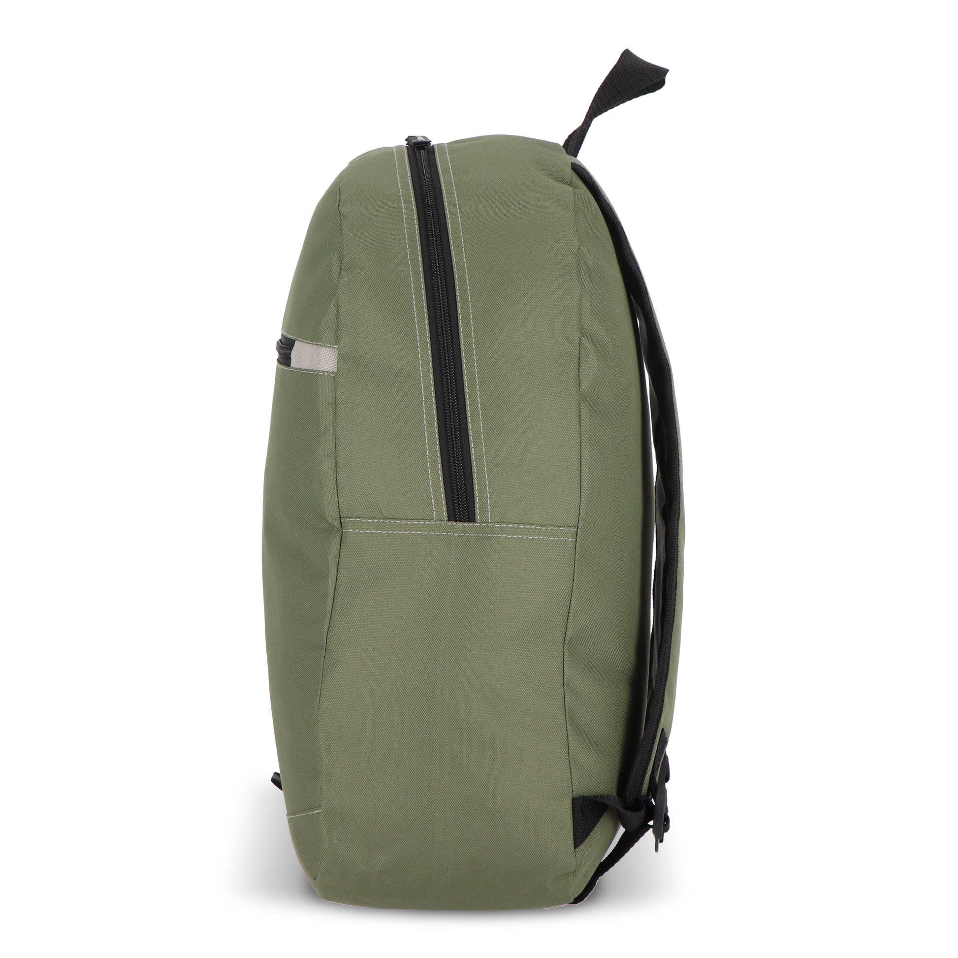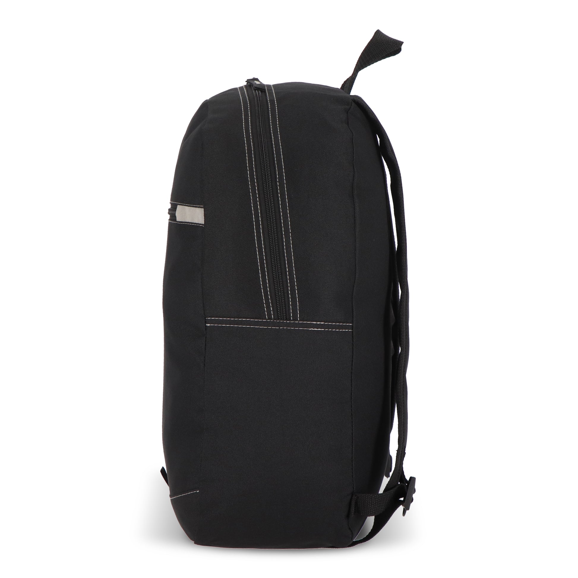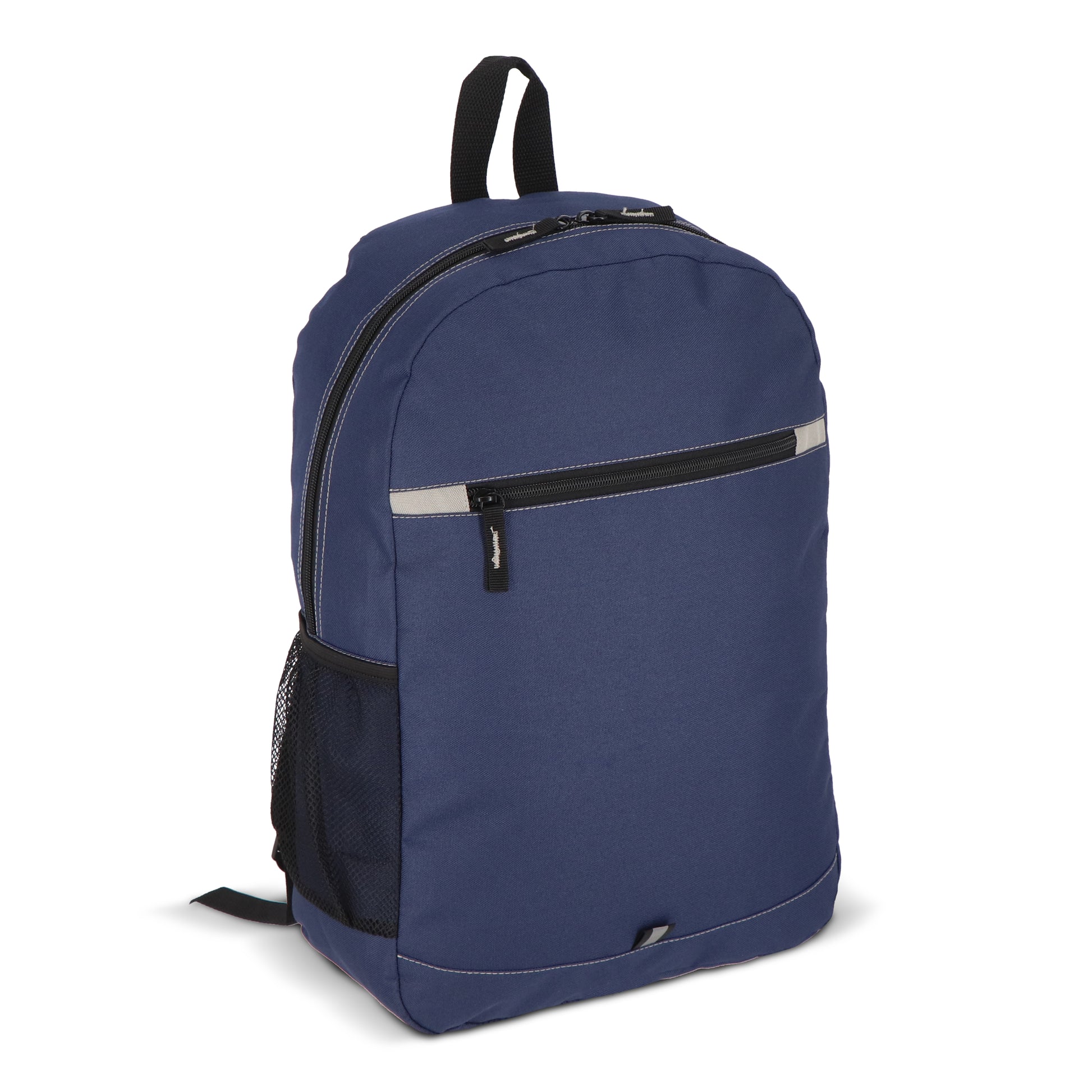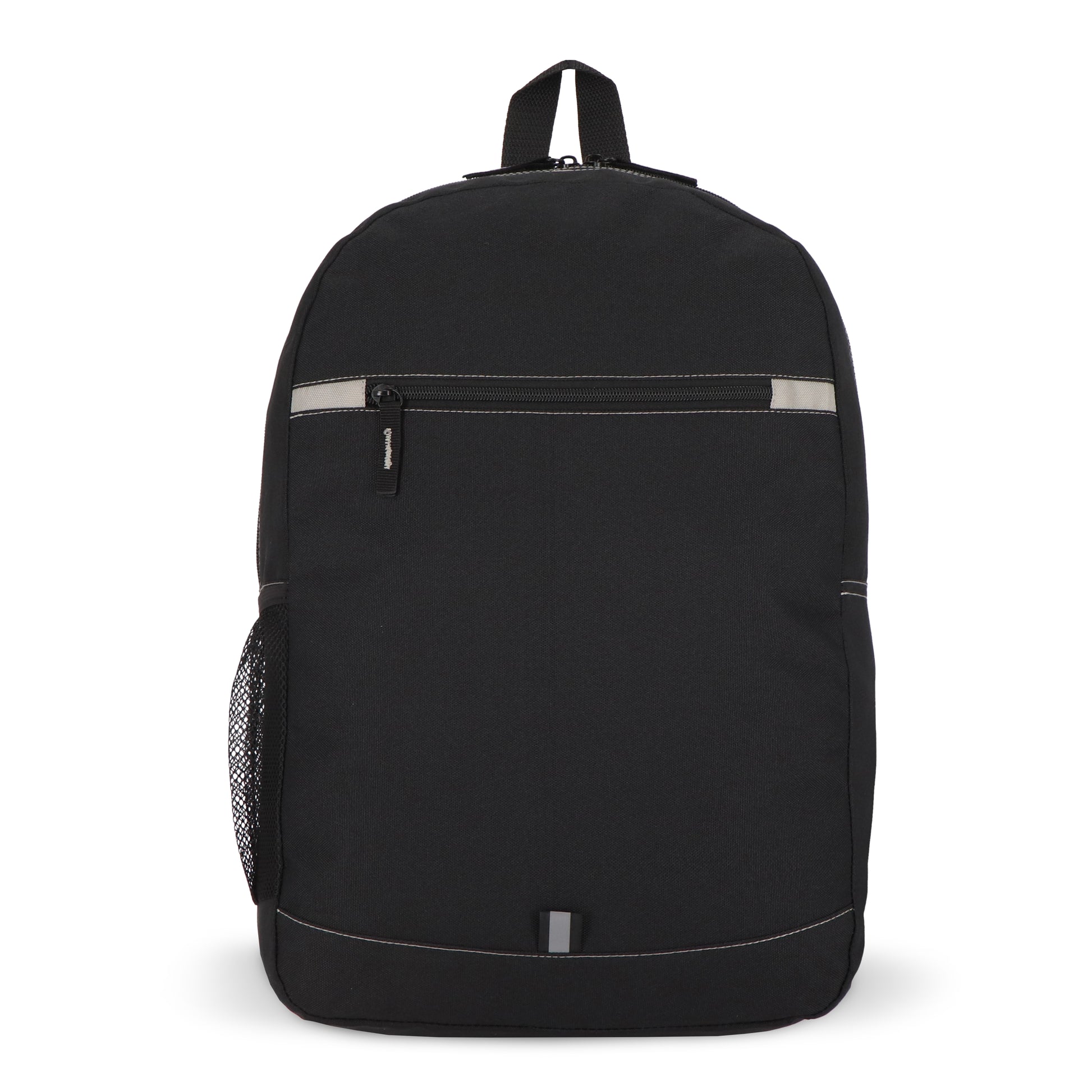 Dieser Rucksack besteht aus recyceltem PET-Material und ist auf funktionale Alltagstauglichkeit ausgerichtet. Er verfügt über verstellbare, gepolsterte Schultergurte sowie einen Tragegriff an der Oberseite. Eine Reißverschluss-Fronttasche, eine seitliche Netztasche und ein dezenter reflektierender Streifen zur verbesserten Sichtbarkeit bei Nacht runden das Ausstattungsprofil ab.