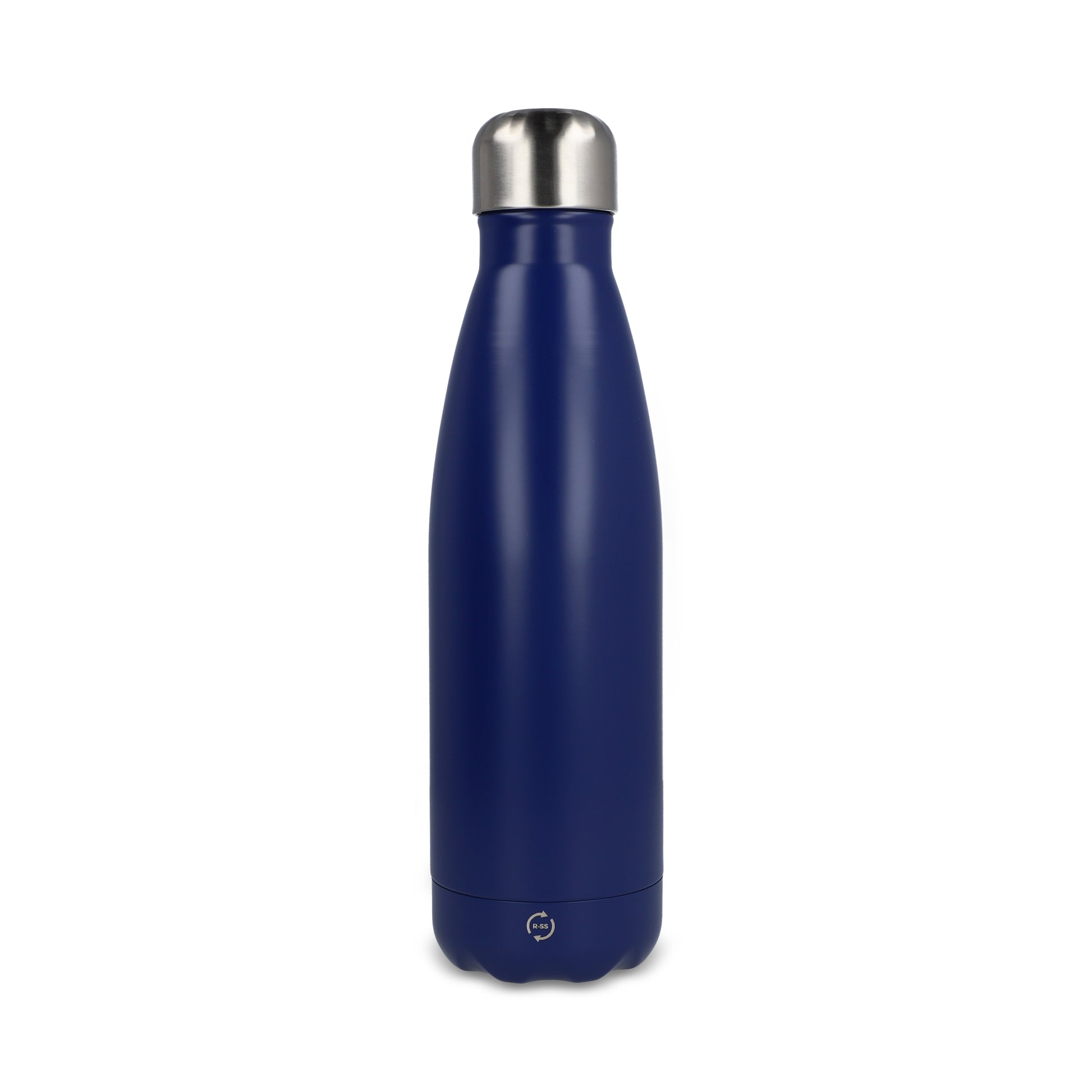 „Unsere beliebte Swing-Flasche ist jetzt aus recyceltem Edelstahl erhältlich. Die doppelwandig vakuumisolierte Flasche hält Getränke lange warm oder kalt und ist auslaufsicher für den Einsatz unterwegs