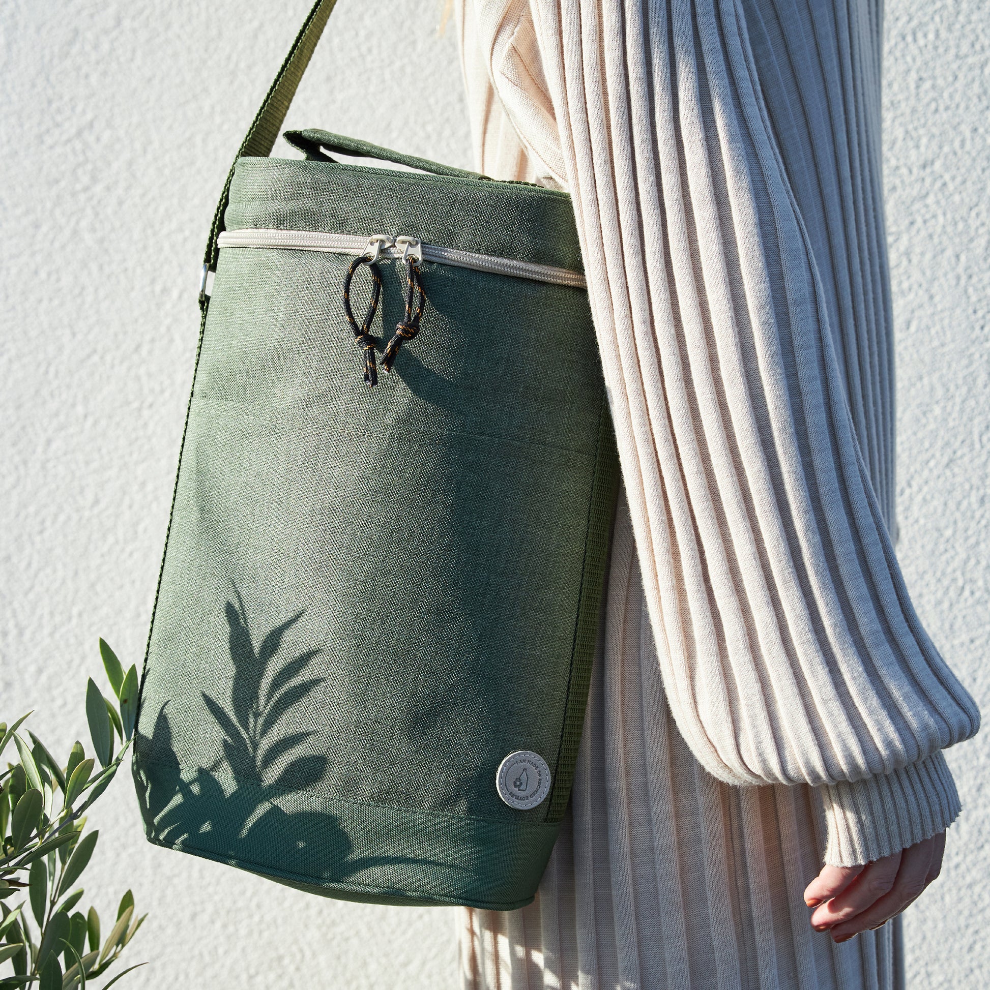 Geräumige und praktische Kühltasche aus rPET-Material, ideal geeignet für beispielsweise zwei Weinflaschen oder 1,5-Liter-PET-Flaschen. Ausgestattet mit einem Tragegriff sowie einem verstellbaren Schultergurt für flexible Transportmöglichkeiten. Gefertigt aus recycelten PET-Flaschen und damit klar nachhaltig positioniert.
