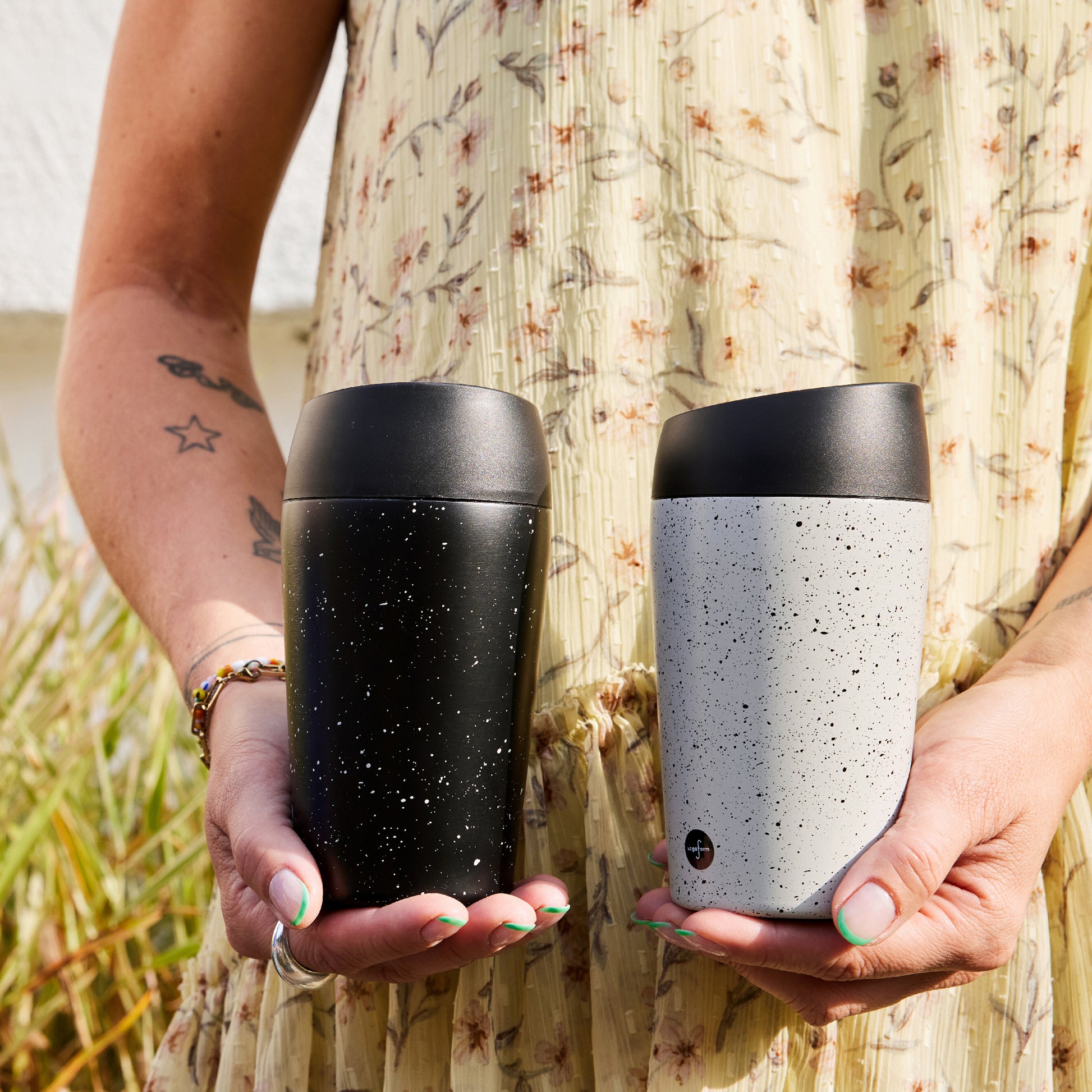 Loke ist ein fantastischer doppelwandiger Becher, den viele Menschen lieben. Nicht nur wegen seines Designs und seiner auslaufsicheren Konstruktion, sondern auch, weil er eine perfekte Alternative zu Papier- oder Plastikbechern darstellt. Dieser Becher mit seiner verspielten Sprenkelbeschichtung hat ein Fassungsvermögen von 240 ml und passt unter die meisten Kaffeemaschinen. Der Becher ist doppelwandig, damit das Getränk länger warm bleibt. Und das Beste: Dank einer intelligenten Verriegelungsfunktion kommt es zu keinem Auslaufen.