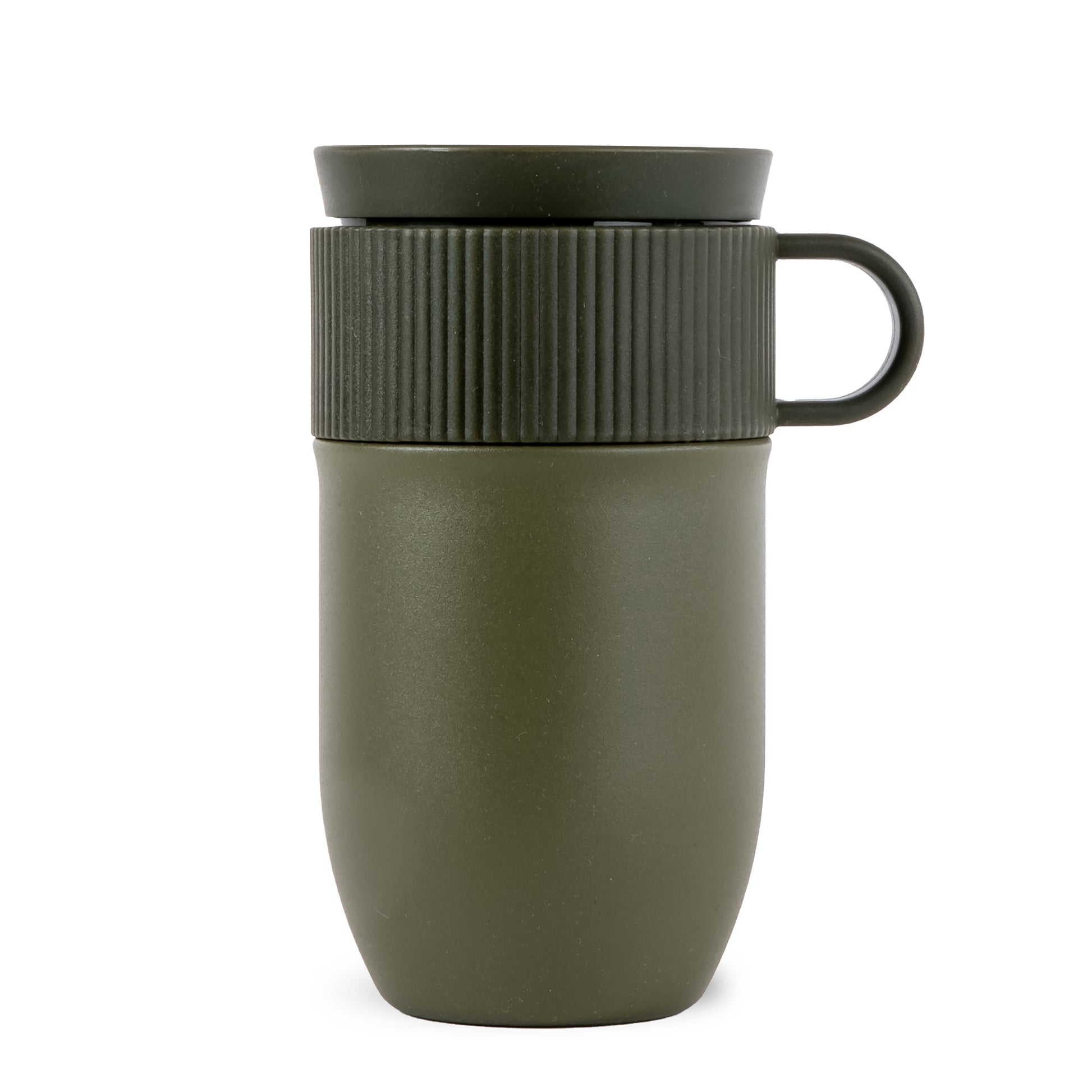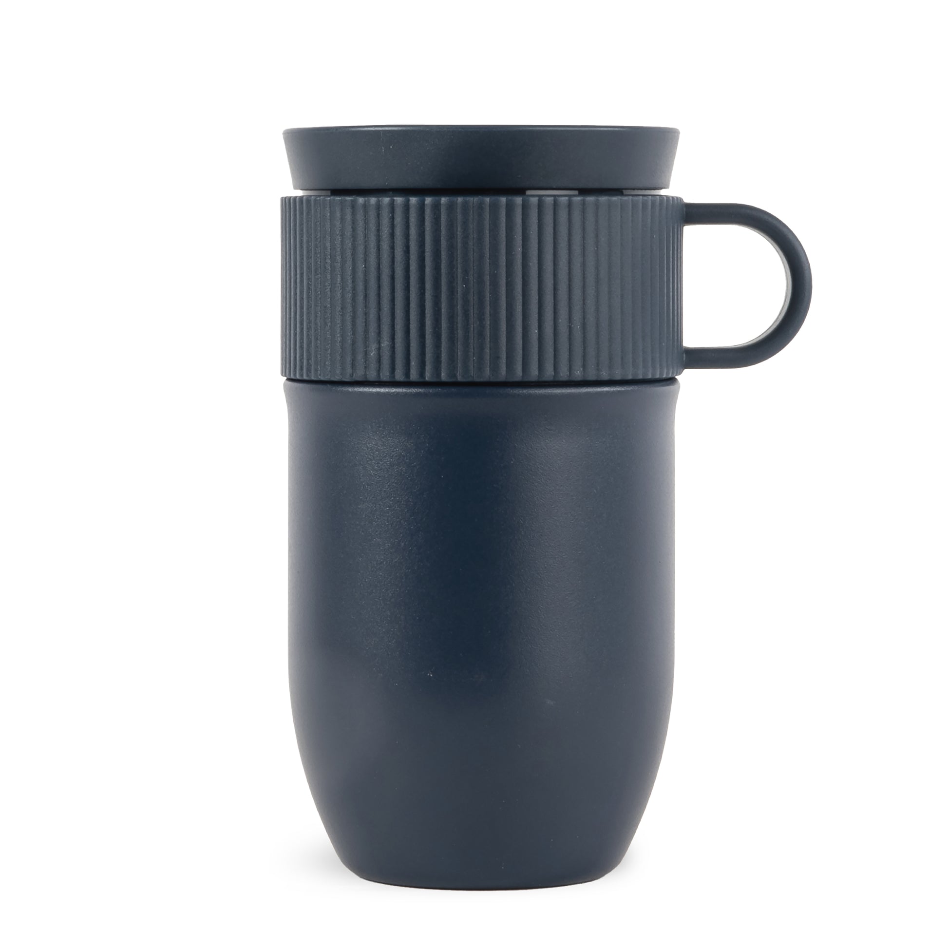 Der Ted Becher von Sagaform ist ein stilvoller und funktionaler Reisebecher – ideal für alle, die ihr heißes oder kaltes Getränk immer griffbereit haben möchten. Hergestellt aus recyceltem Edelstahl, ist dieser Becher in trendigen Farben und auffälligen Farbkombinationen erhältlich, darunter auch Gold und Silber. Das doppelwandige, vakuumisolierte Design mit einer dünnen Kupferschicht sorgt dafür, dass Ihr Getränk 4 Stunden heiß oder 8 Stunden kalt bleibt. Mit einem praktischen Henkel, einem cleveren Druckknopfdeckel und einem 360°-Trinkerlebnis fühlt es sich an, als würden Sie aus einer normalen Tasse trinken. Spülmaschinenfest und in einer stilvollen Geschenkbox verpackt, ist Ted sowohl nachhaltig als auch elegant – perfekt für unterwegs. Entworfen vom Studio Sagaform.