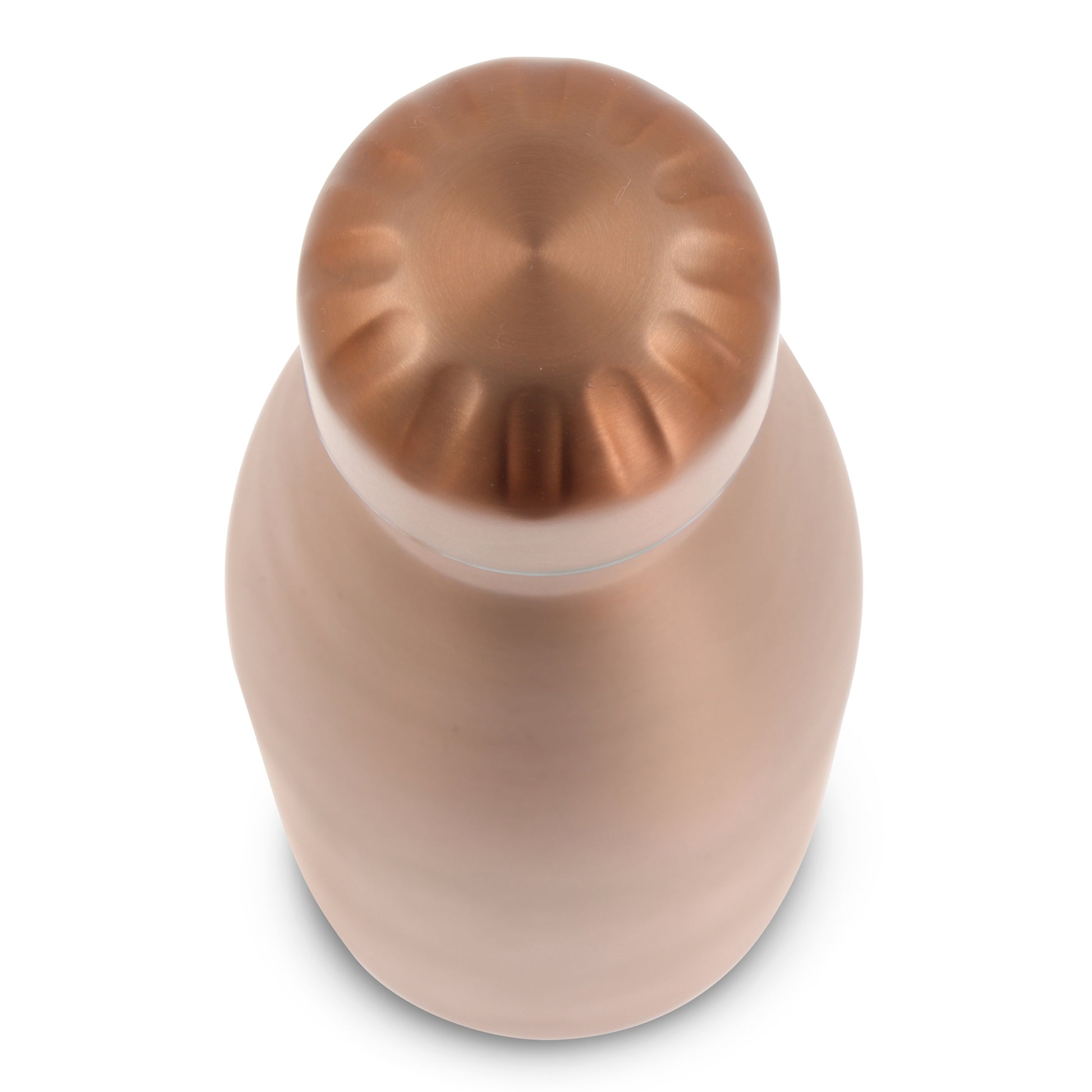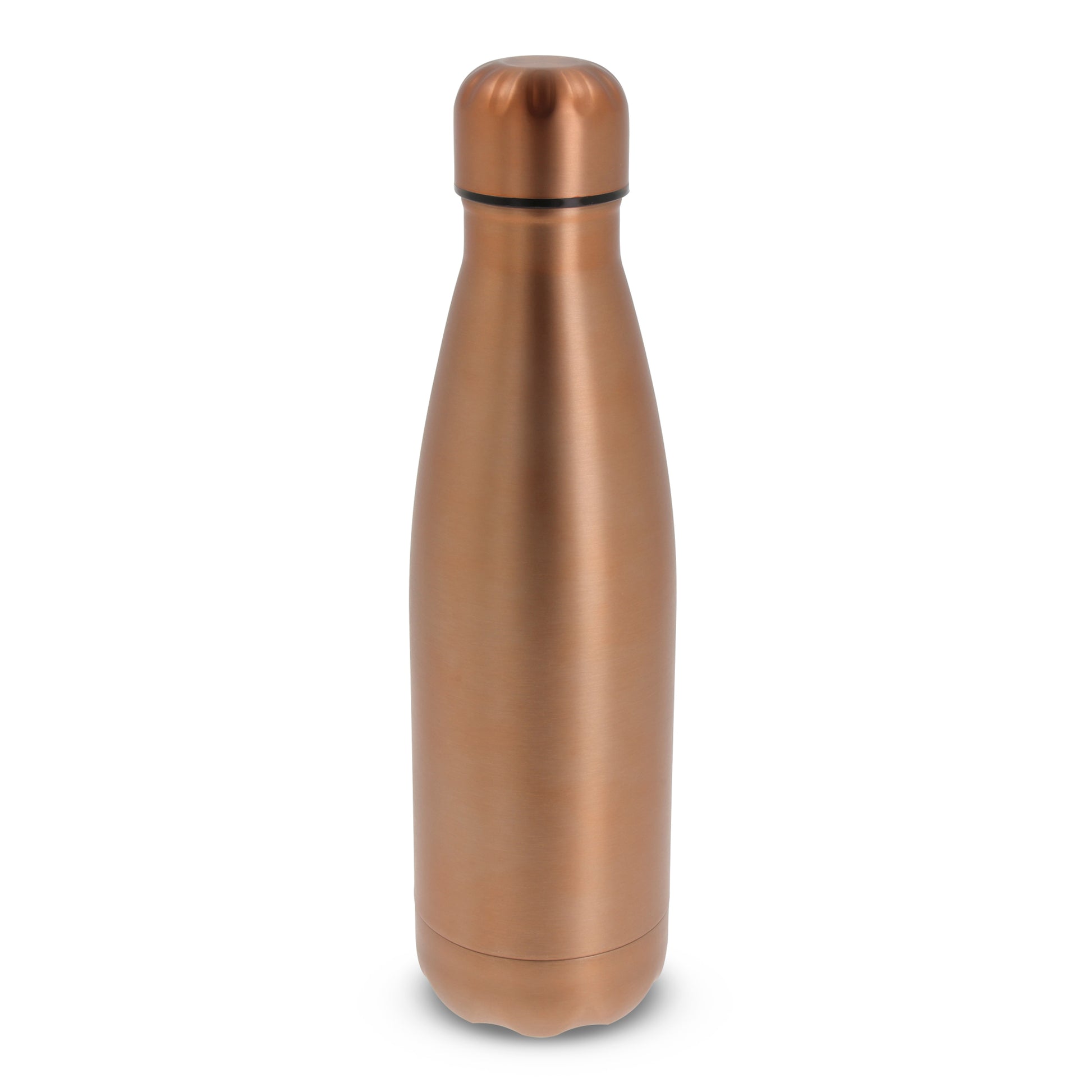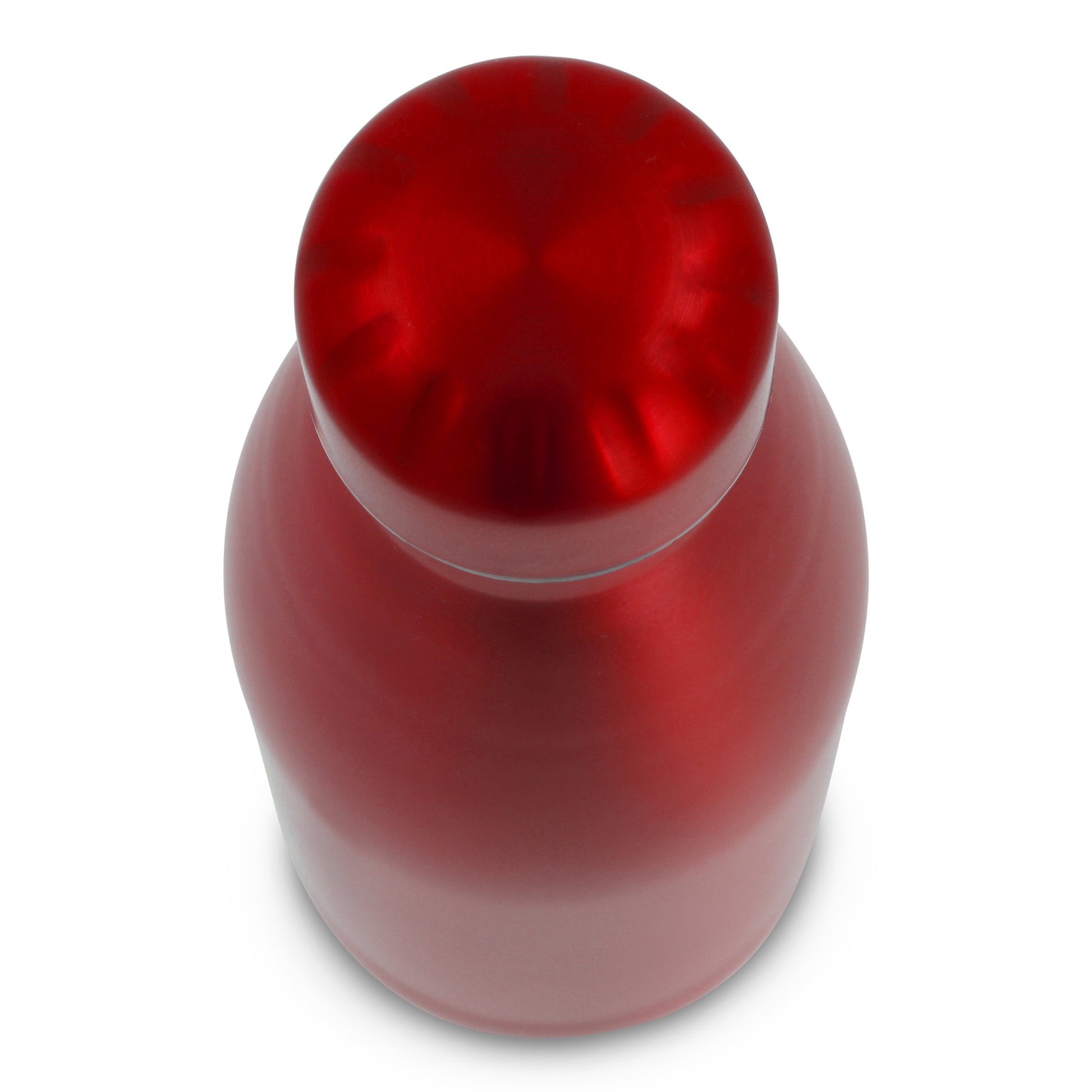 Doppelwandige, vakuumisolierte Trinkflasche mit metallicfarbener Oberfläche. Durch den Vakuumraum zwischen den Wänden bleibt die Flasche zu 100 % auslaufsicher und hält Getränke länger auf Temperatur. Hält Getränke bis zu 12 Stunden warm und bis zu 24 Stunden kalt. Geliefert in einer Geschenkbox.